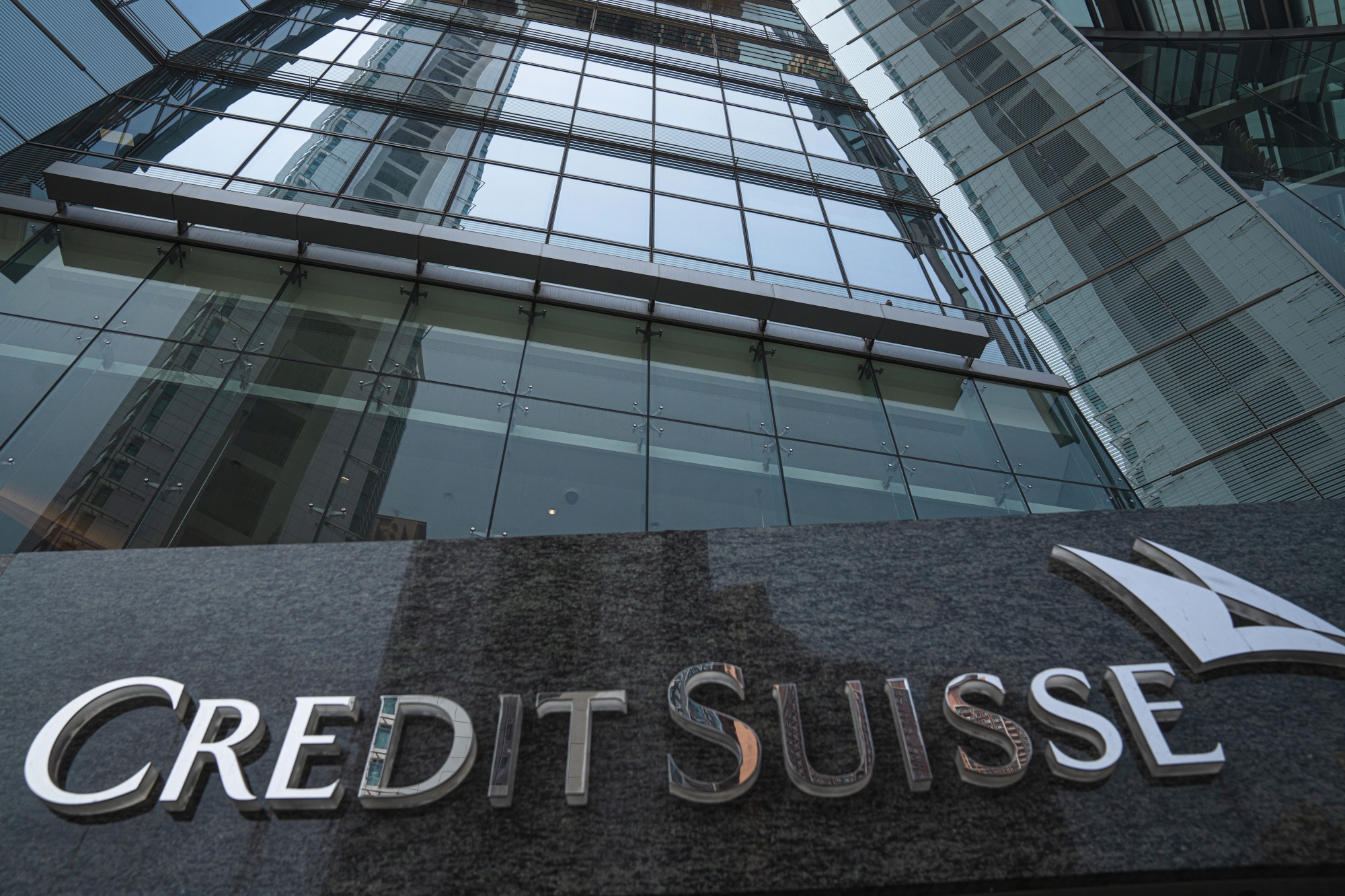瑞士信贷集团AG在香港一栋建筑物外的标识。