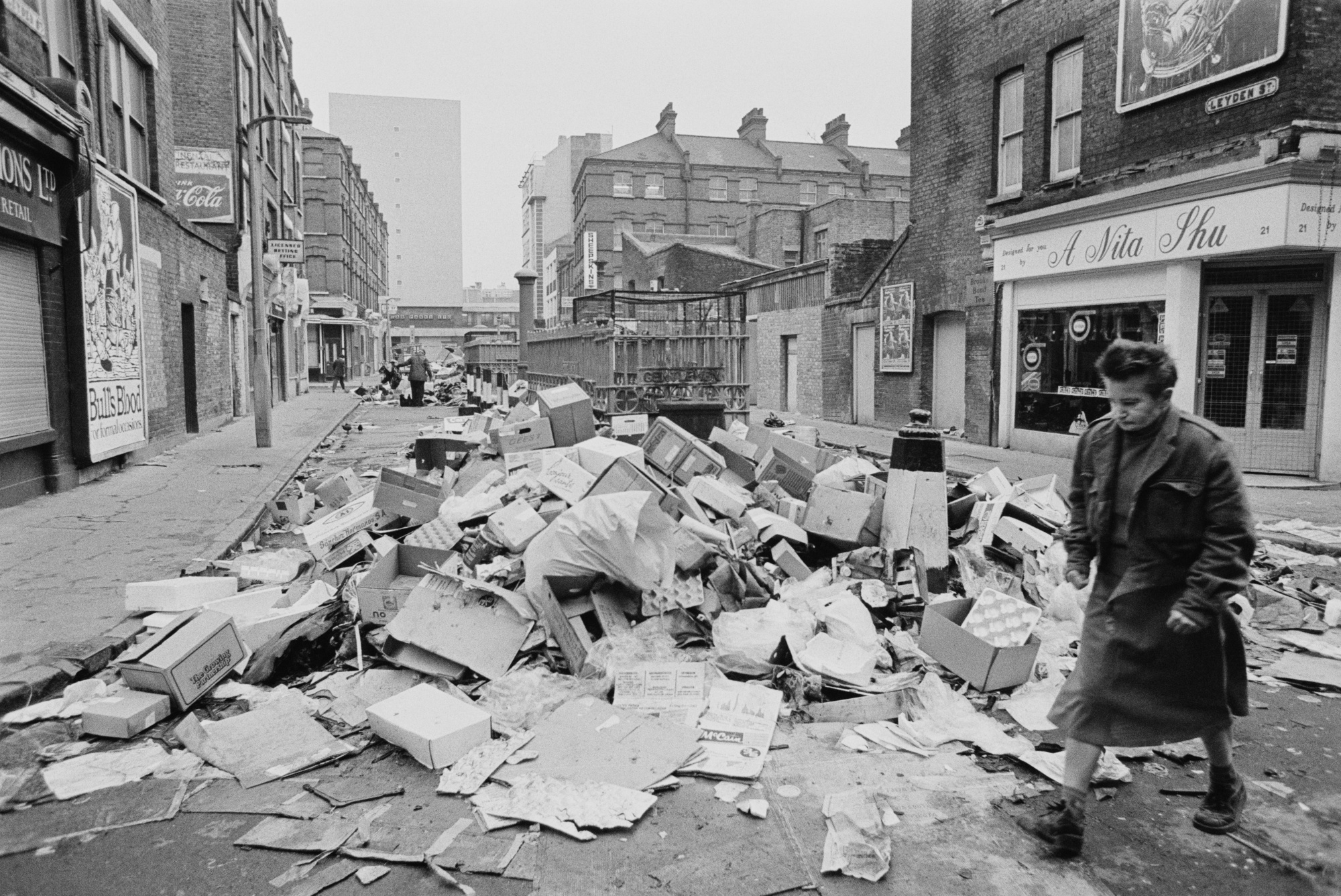 1979年2月英国“不满之冬”期间的伦敦莱顿街。摄影:Maurice Hibberd/Evening Standard/Hulton Archive/Getty Images环卫工人罢工的确在向全世界展示社会不和谐,它们可以带来持久的政治变革。正如科尼格所指出的,英国保守党政客攻击工党对手时仍会提及“不满之冬”——1978年和1979年发生的一系列罢工,导致伦敦和其他英国城市的垃圾堆堆积到周围建筑物的高度,不仅帮助玛格丽特·撒切尔赢得选举胜利,而且成为英国文化中混乱的有力视觉代表之一。