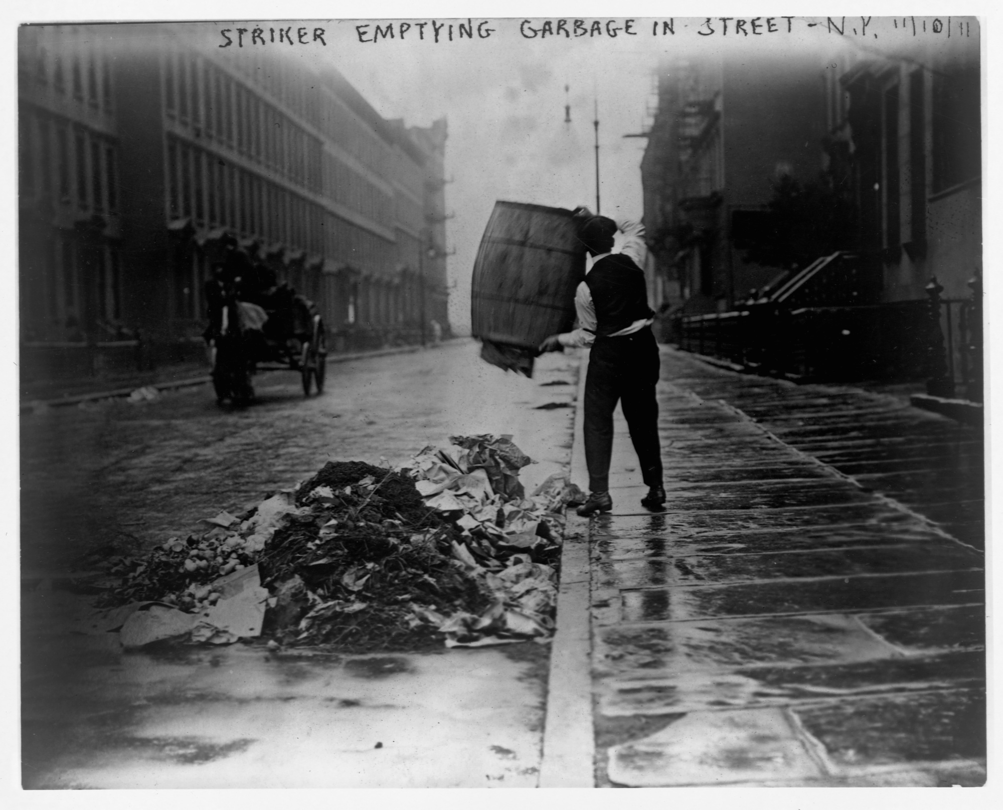这种劳工行动在20世纪的欧洲和北美城市生活中变得司空见惯。它们相对较晚出现,比工业社会其他领域的纠纷晚一些,因为城市接管了私人企业的垃圾收集工作。市场对于“灰尘”——燃煤炉和电器产生的灰烬残留物,它们在制砖和作为土壤添加剂方面有商业价值——的需求下降,使垃圾贸易变得不盈利。