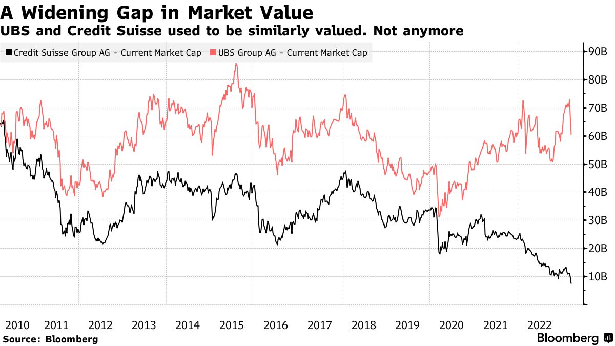 瑞士银行同意收购瑞士信贷(CS)以结束危机 - 彭博社