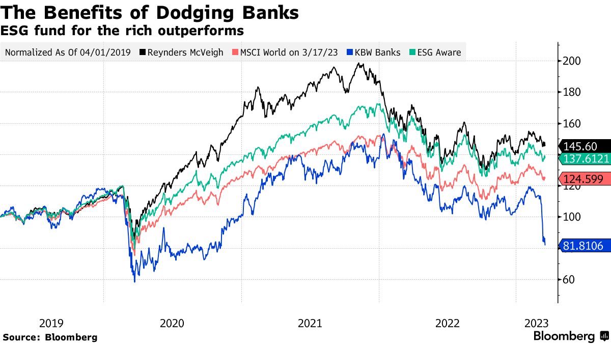 雷因德斯长期以来对银行的看法开始引起其他ESG基金经理的共鸣,此前该行业陷入了自2008年金融危机以来的最严重危机。投资者现在发现自己在思考银行股票与ESG应该关注的环境、社会和良好治理目标之间的契合程度。