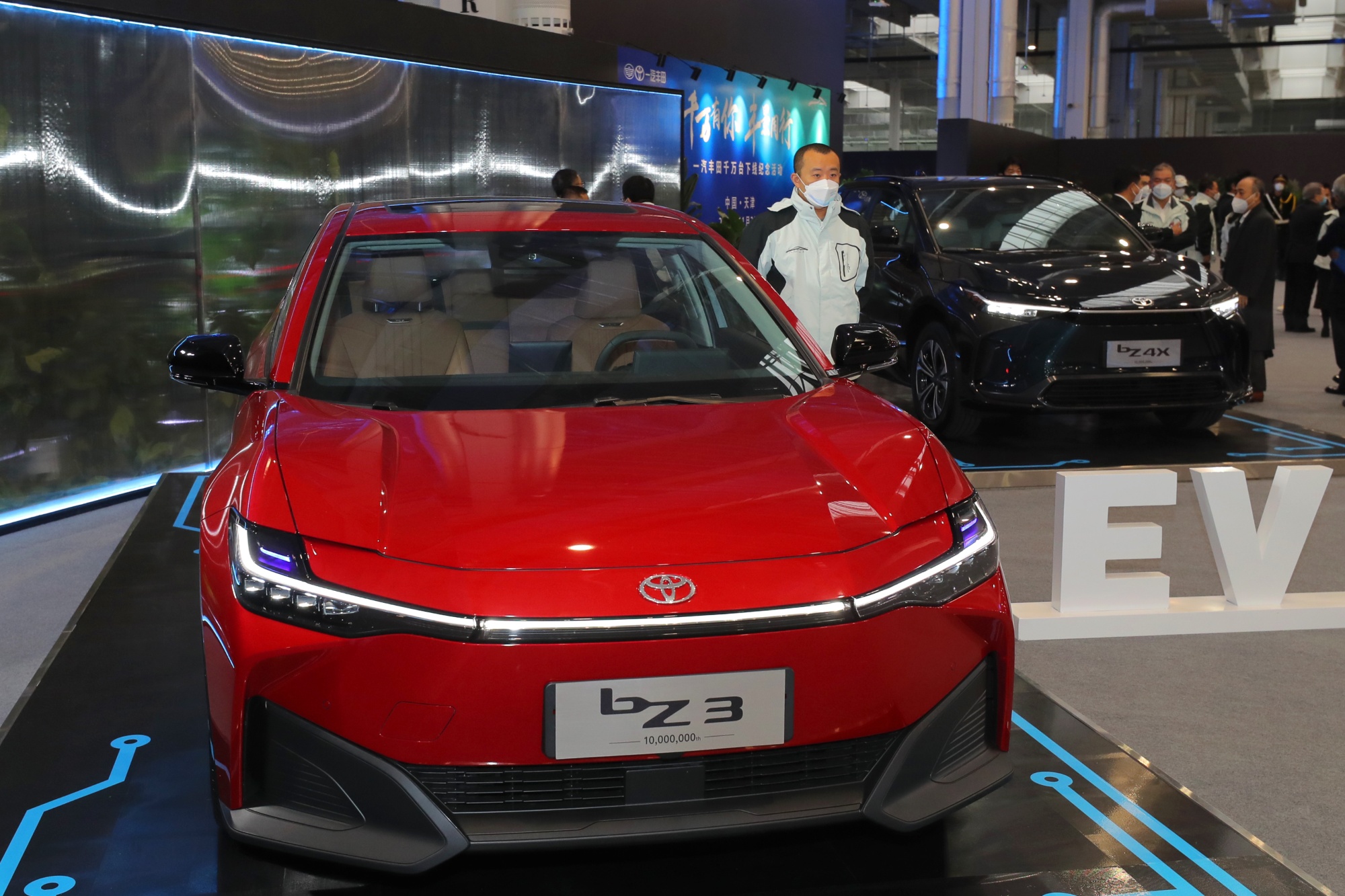 丰田 bZ3摄影师:VCG/Getty Images丰田最新为中国市场推出的电动汽车,bZ3,是与比亚迪合作生产的,比亚迪提供电池。这款汽车于3月6日推出,起售价为169,800元(24,500美元)。这家日本汽车制造商在中国提供约10款混合动力车型和4款纯电动车型。