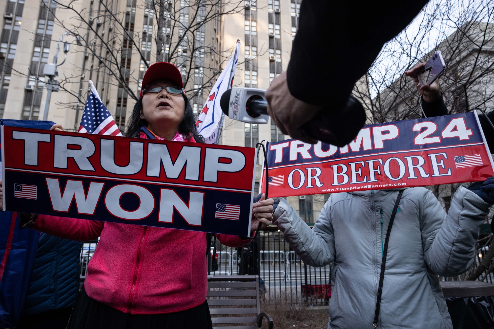 昨天在纽约纽约县刑事法院外的特朗普支持者。摄影师:Yuki Iwamura/Bloomberg即将推出*:透过商业、政府和经济的视角了解华盛顿的权力。立即订阅新的彭博华盛顿版新闻简报。*