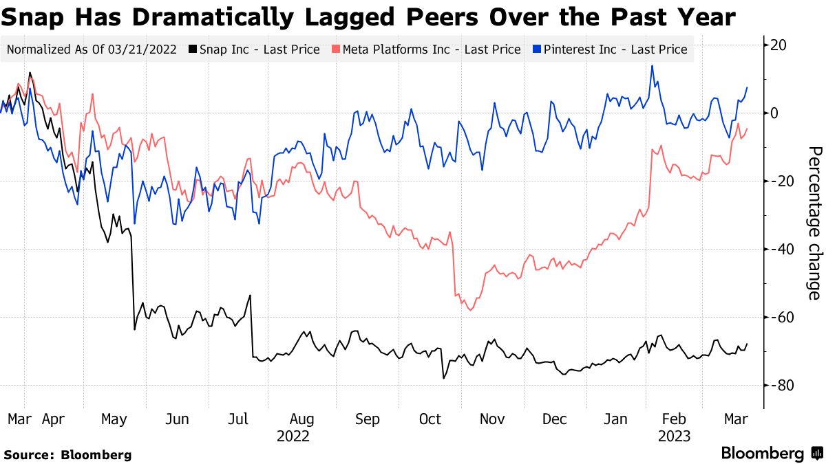 Snap,尤其是其投资者,可以利用这样的提振。过去一年股价下跌了68%,而Pinterest Inc.上涨了7.7%,Meta下跌了3.6%,这是Facebook母公司最近凭借积极的成本削减(包括多轮裁员)重新赢得了华尔街的青睐,这一举措促使了摩根士丹利和KeyBanc Capital Markets本周的股票评级提升。