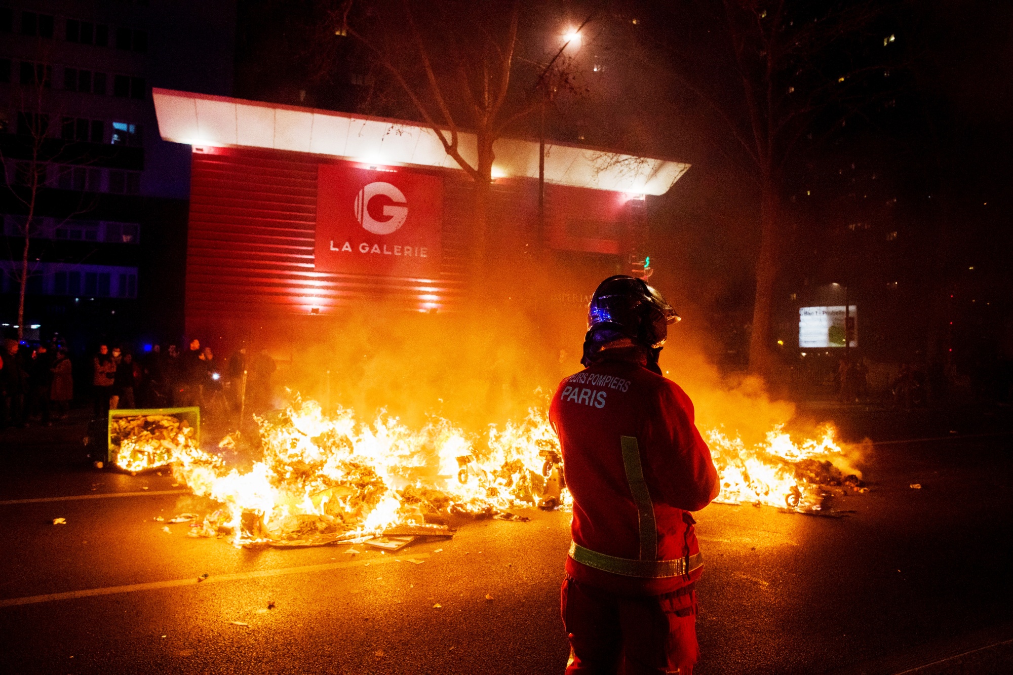 周六巴黎示威者点燃的火焰。摄影师:Nathan Laine/Bloomberg### 您可以使用的解释
