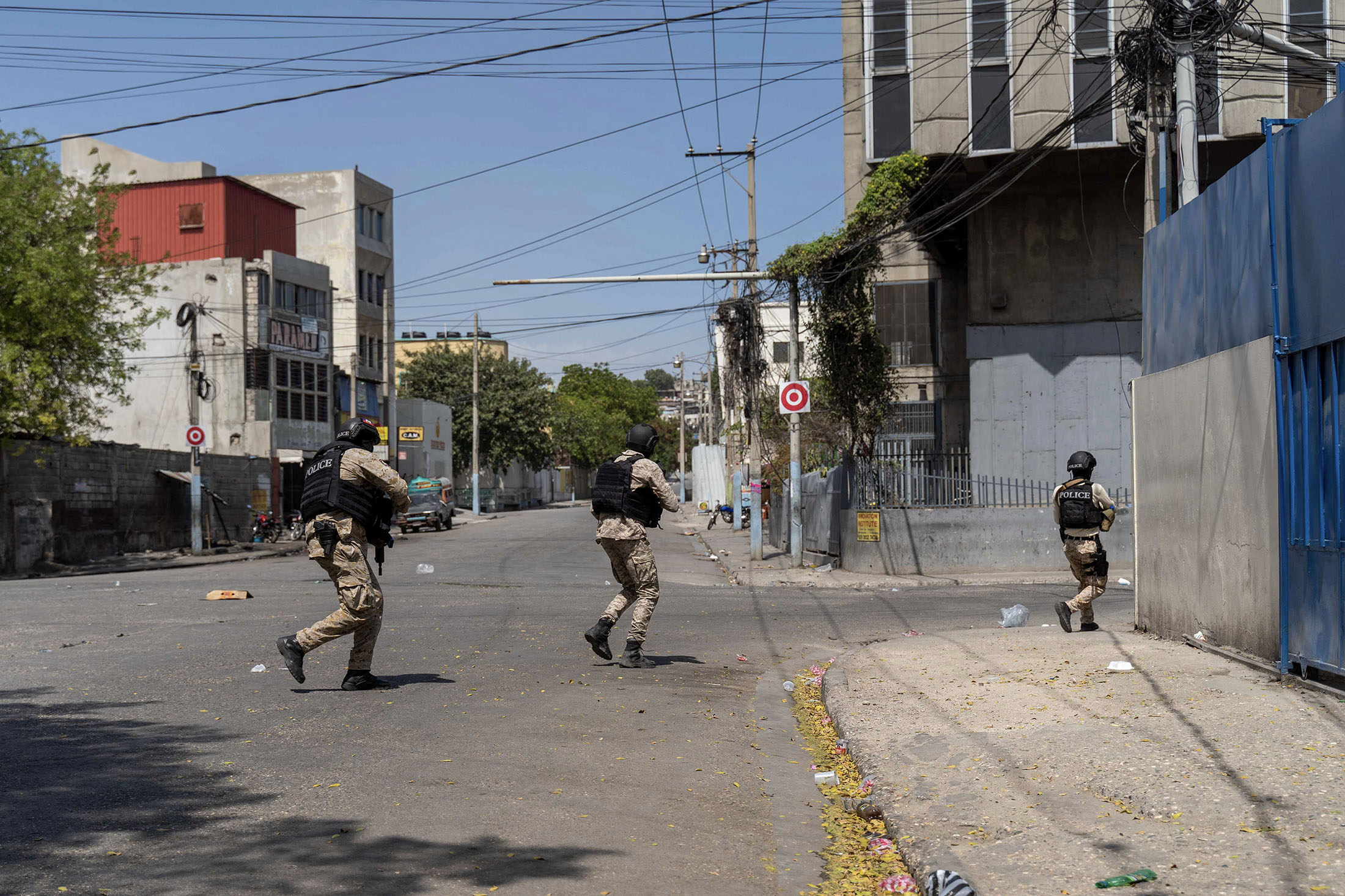 海地国家警察试图驱逐在太子港中心总统府附近的一个社区的团伙,时间是3月3日。