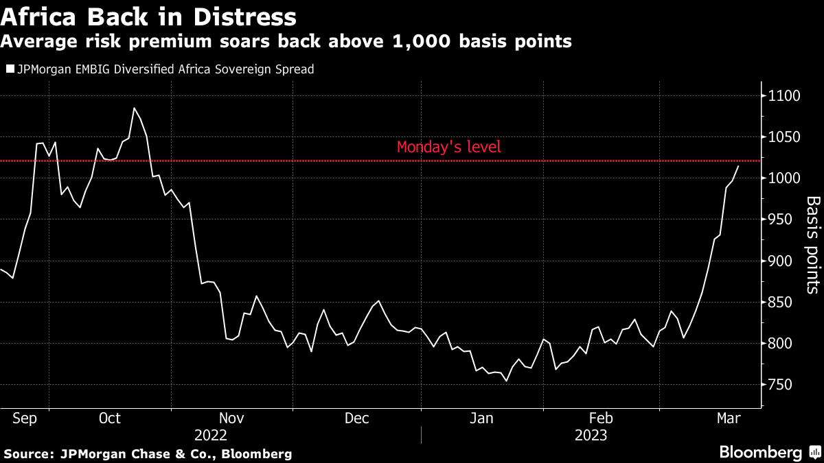 非洲债券风险溢价连续第10天上涨,这是自2016年1月以来增长最长的一次。自瑞士信贷银行的风险债券被注销以来,交易员一直在抛售来自新兴和前沿国家的资产,这些国家被认为不够稳定。