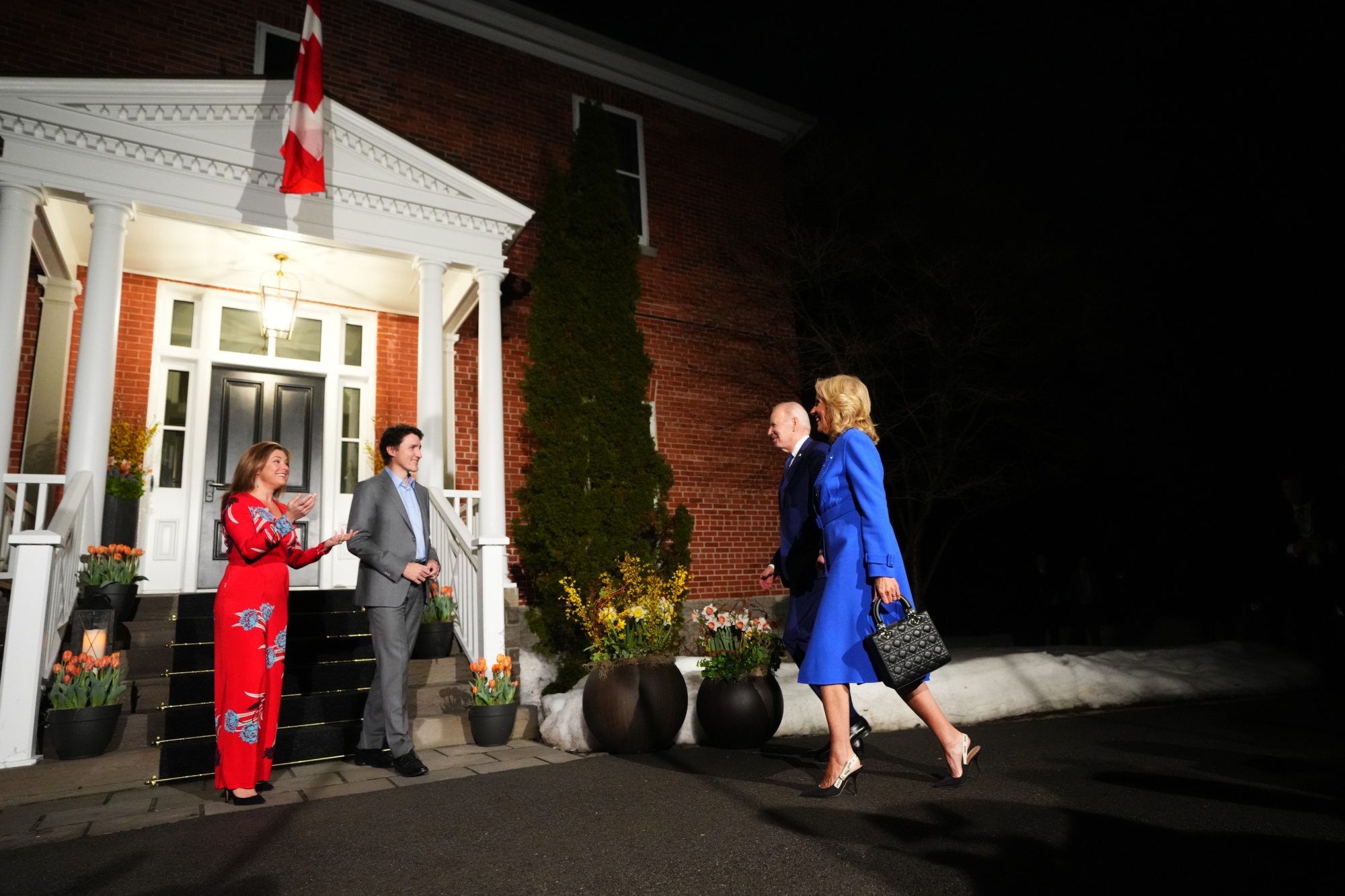 总统乔·拜登和第一夫人吉尔·拜登在渥太华里多小屋受到总理贾斯汀·特鲁多和苏菲·格雷戈瓦·特鲁多的迎接,之后进行了周四的私人晚餐。摄影师:肖恩·基尔帕特里克/加拿大新闻社/彭博社一起涉及一名涉嫌中国间谍气球的事件加剧了紧张局势,该气球越过美国后被击落。这个气球引发了美国和加拿大通过北美防空司令部(NORAD)疯狂地重新校准防御系统,并摧毁天空中的其他未知物体。