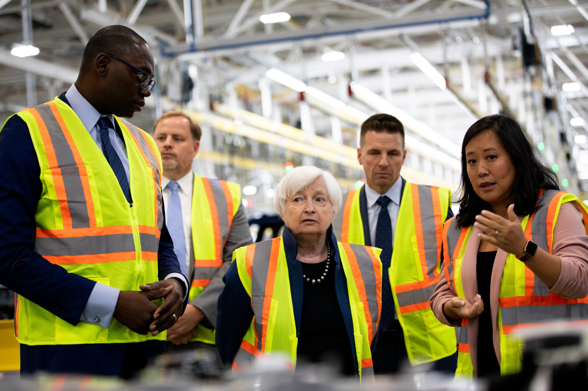 财政部长珍妮特·耶伦在9月参观福特F-150 Lightning生产线。摄影师:艾米丽·埃尔科宁/彭博社财政部的艰巨任务是在审查法律并通过美国税法实施的过程中,试图平衡这些竞争利益。到3月31日,财政部将就通货膨胀减少法案的一个关键部分,称为第30D条,发布指导意见。这部分决定了美国消费者在购买全电动或插电混合动力汽车时是否能获得高达7500美元的折扣。