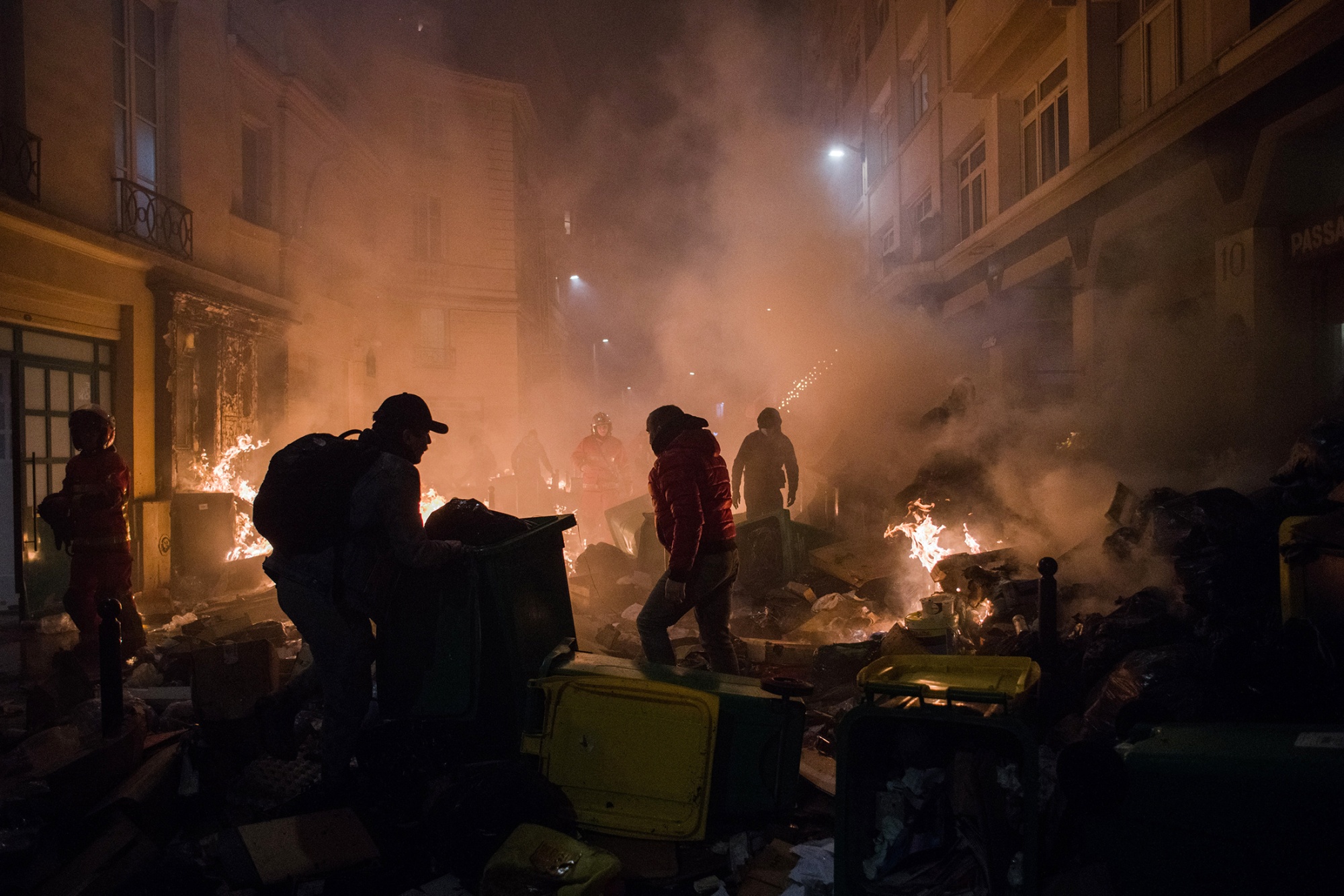 对于那些推动新的、充满活力的法国的人来说,这是噩梦的内容:巨大的臭气熏天的垃圾袋堆满了巴黎市中心圣母院附近的垃圾箱,波尔多的暴徒纵火焚烧市政厅宏伟的大门,各大城市爆发了催泪瓦斯混合的战斗,防暴警察和抗议者之间爆发冲突,抗议者们焚烧他们能够拿到的任何东西。