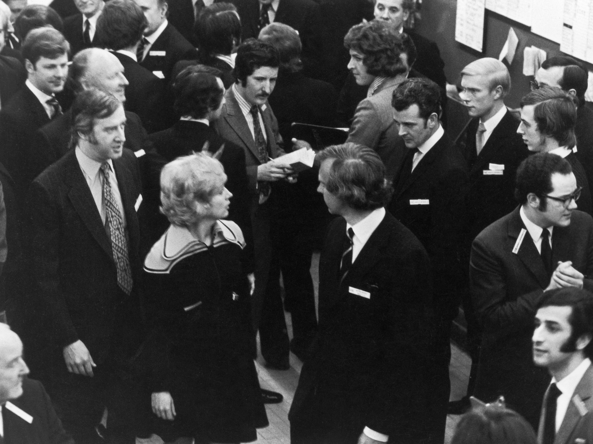 伦敦证券交易所本身并不希望女性加入,会员们多次投票反对。只有因为伦敦交易所与地区交易所合并,而在地区交易所,女性已经被允许参与公司股票的买卖。肖说:“我们是通过后门进来的。”50年前的这个星期天,那个第一批被接纳的小组只有12人。