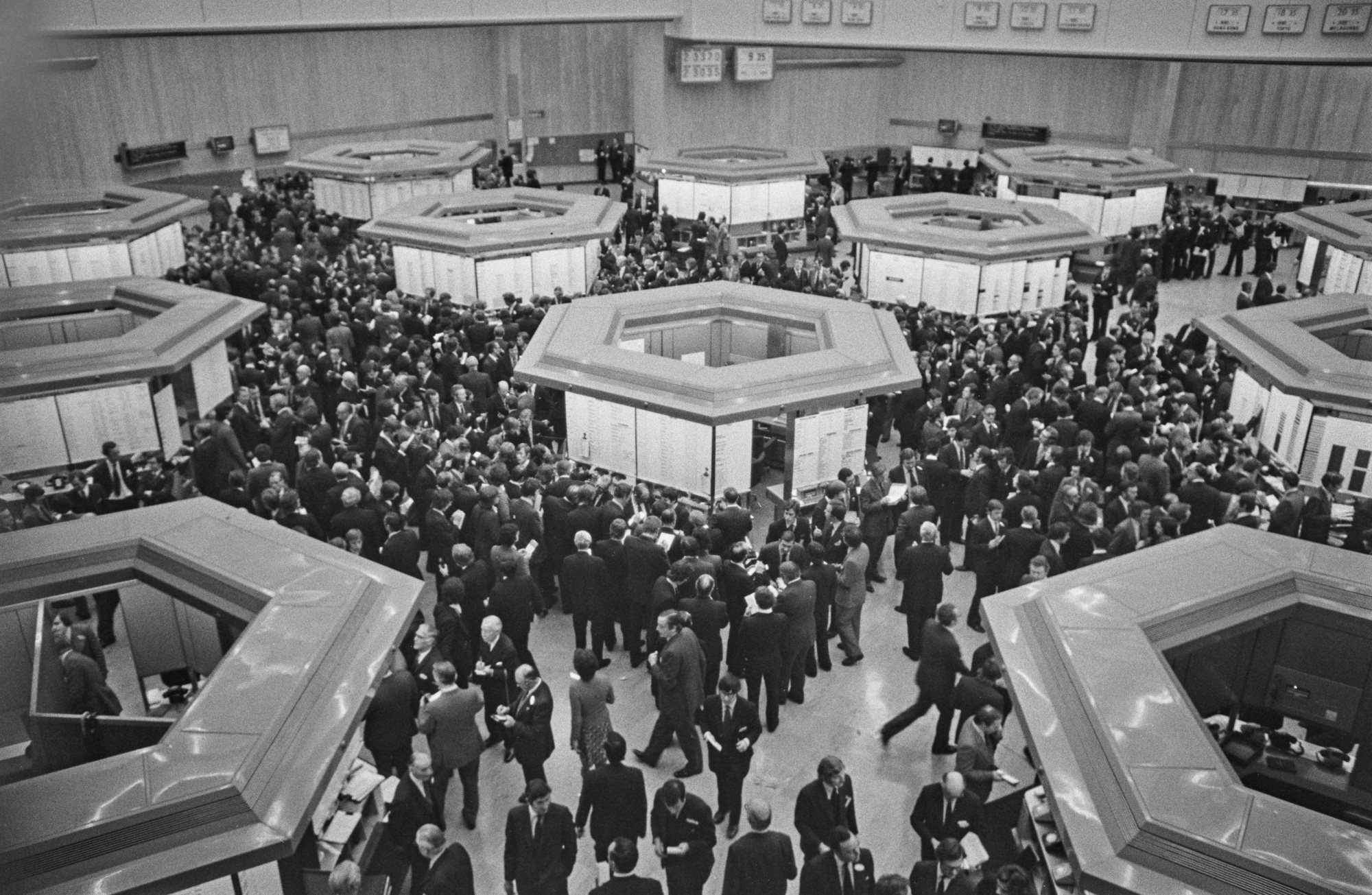 1973年的交易大厅。来源:晚间标准/盖蒂图片随后发生了许多变化,包括城市中女性数量的增加,以及由于1986年的“大爆炸”改革而导致伦敦作为金融中心的急剧增长和国际化。但是代表和薪酬问题至今仍然是重要议题。
