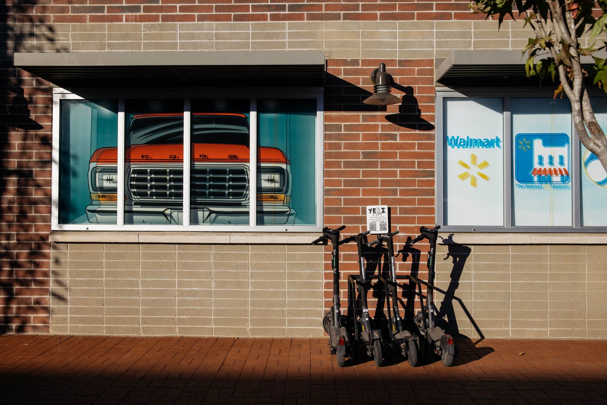 在本顿维尔出租的滑板车。摄影师:Terra Fondriest/Bloomberg当新的沃尔玛园区开放时,大约一半的员工将住在离工作地点5英里内。计划是让每位员工都能方便地进入自行车停车场、淋浴和更衣柜。Marsiglio表示,起初可能会有更多的停车位而没有骑自行车的人,但公司正在押注达到其10%的目标。这种信心使其能够减少分配给汽车的空间。“我不需要建一个完整的停车场,”她说。