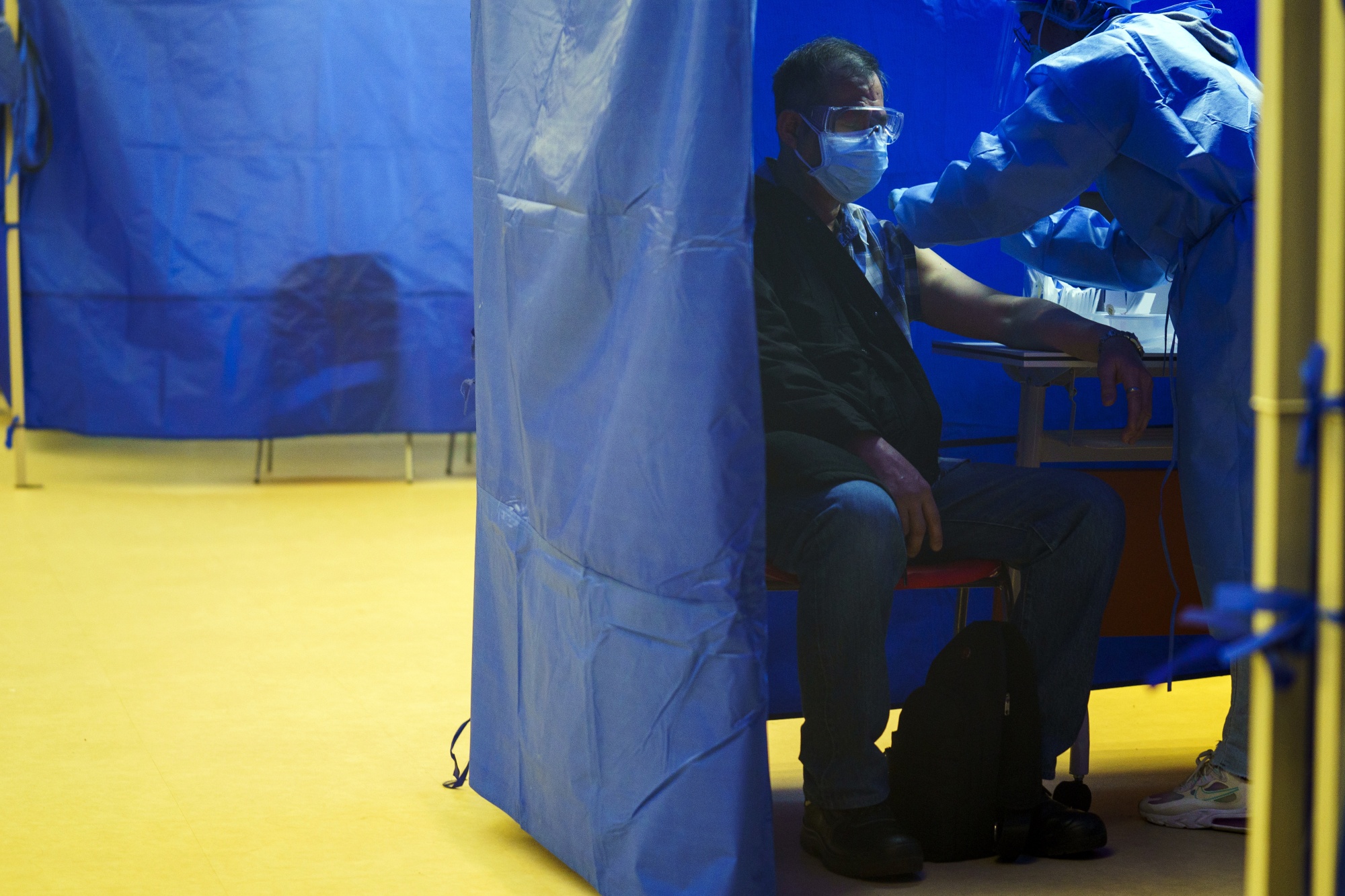 一名居民在香港社区中心接种了中国研发的新冠疫苗科兴生物有限公司的疫苗。