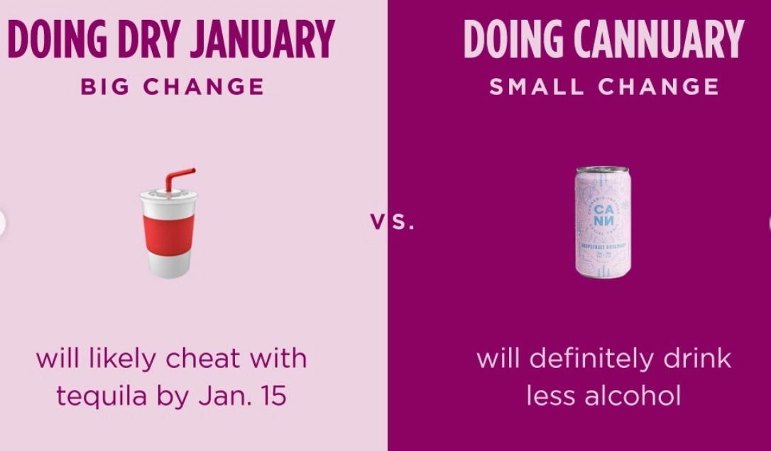 “Cannuary”是Cann的一个广告活动,Cann是最知名的THC注入饮料之一。该产品在30多个州在线上销售,广告的目标是那些试图“戒酒一月”的人。