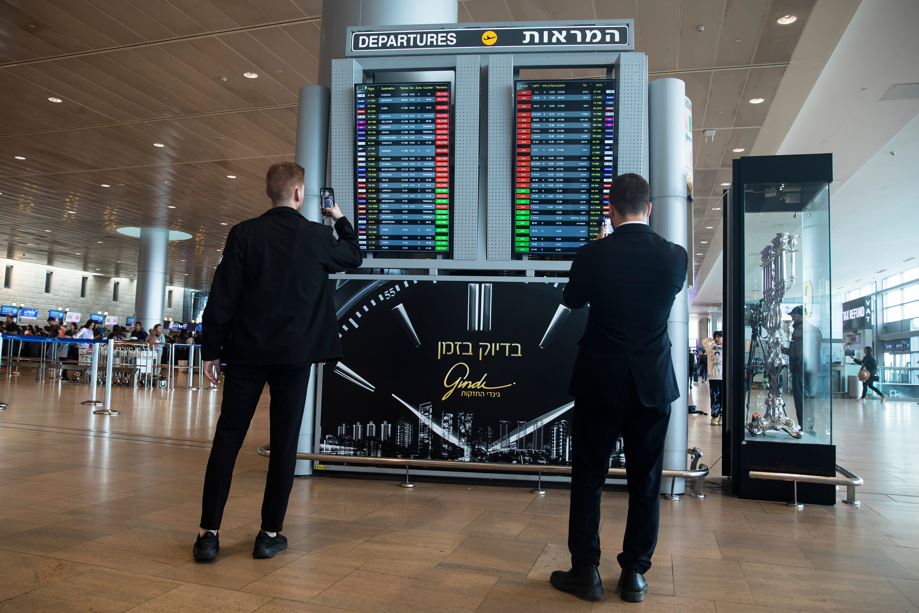 3月27日,耶路撒冷本古里安机场显示取消航班的离港航班信息牌。摄影师:Amir Levy/Getty Images### 以色列市场因拖延迹象上涨(下午1:45)