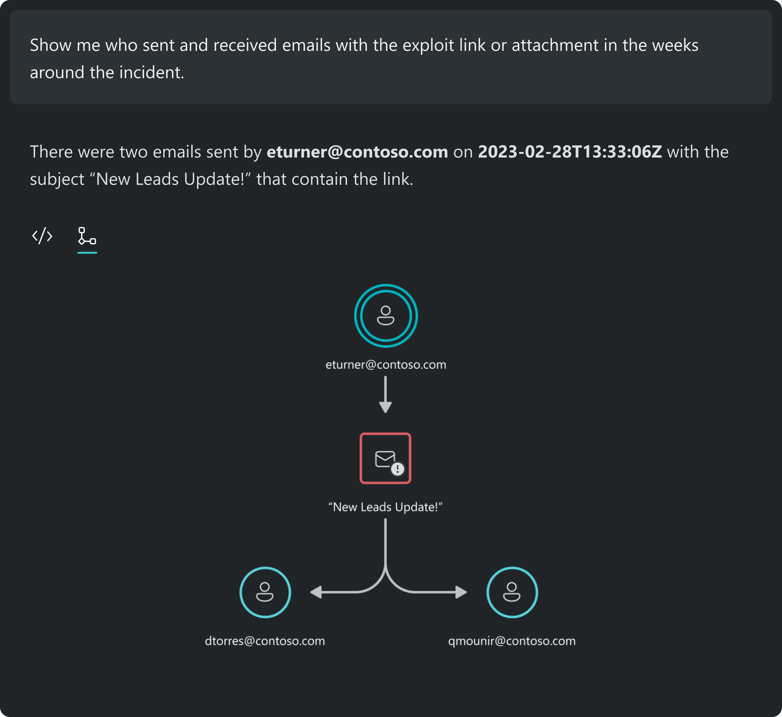这款软件允许用户提出问题,比如:“如何控制已经受到攻击的设备?”或者他们可以要求安全副驾驶列出在入侵事件发生前后几周内发送或接收带有危险链接的电子邮件的人员名单。该工具还可以更轻松地创建事件和响应的报告和摘要。