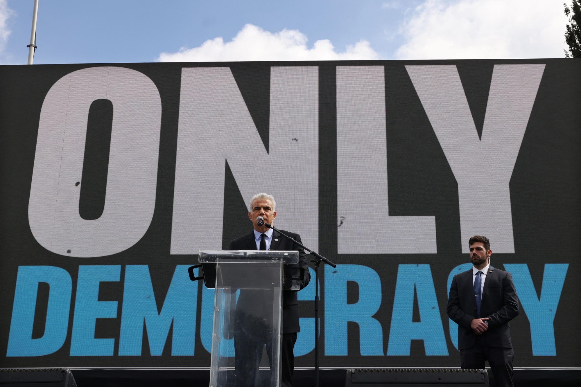 亚尔·拉皮德在以色列耶路撒冷议会外发表讲话,日期为3月27日。摄影师:Hazem Bader/AFP/Getty Images反对派领袖雅伊尔·拉皮德警告说,在即将开始的妥协计划谈判中,反对派谈判代表必须保持警惕。“任何曾与内塔尼亚胡合作过的人都知道要防备他的把戏,”他在周二接受ynet电台采访时说。