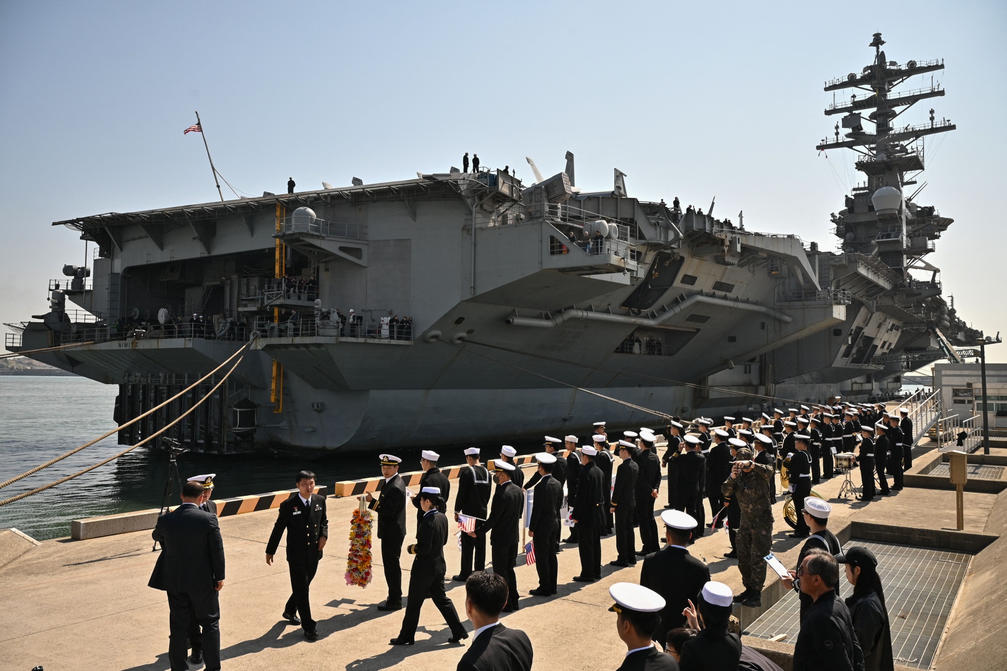 3月28日,美国尼米兹号航空母舰停靠在釜山。摄影师:安东尼·华莱士/法新社/盖蒂图片社美国尼米兹号航空母舰编队计划于周二抵达釜山,以加强盟国的联合军事姿态,韩国国防部表示。大约六个月前,美国海军航母编队最后一次停靠在韩国时,朝鲜升级了紧张局势,包括五年来首次向日本发射导弹。