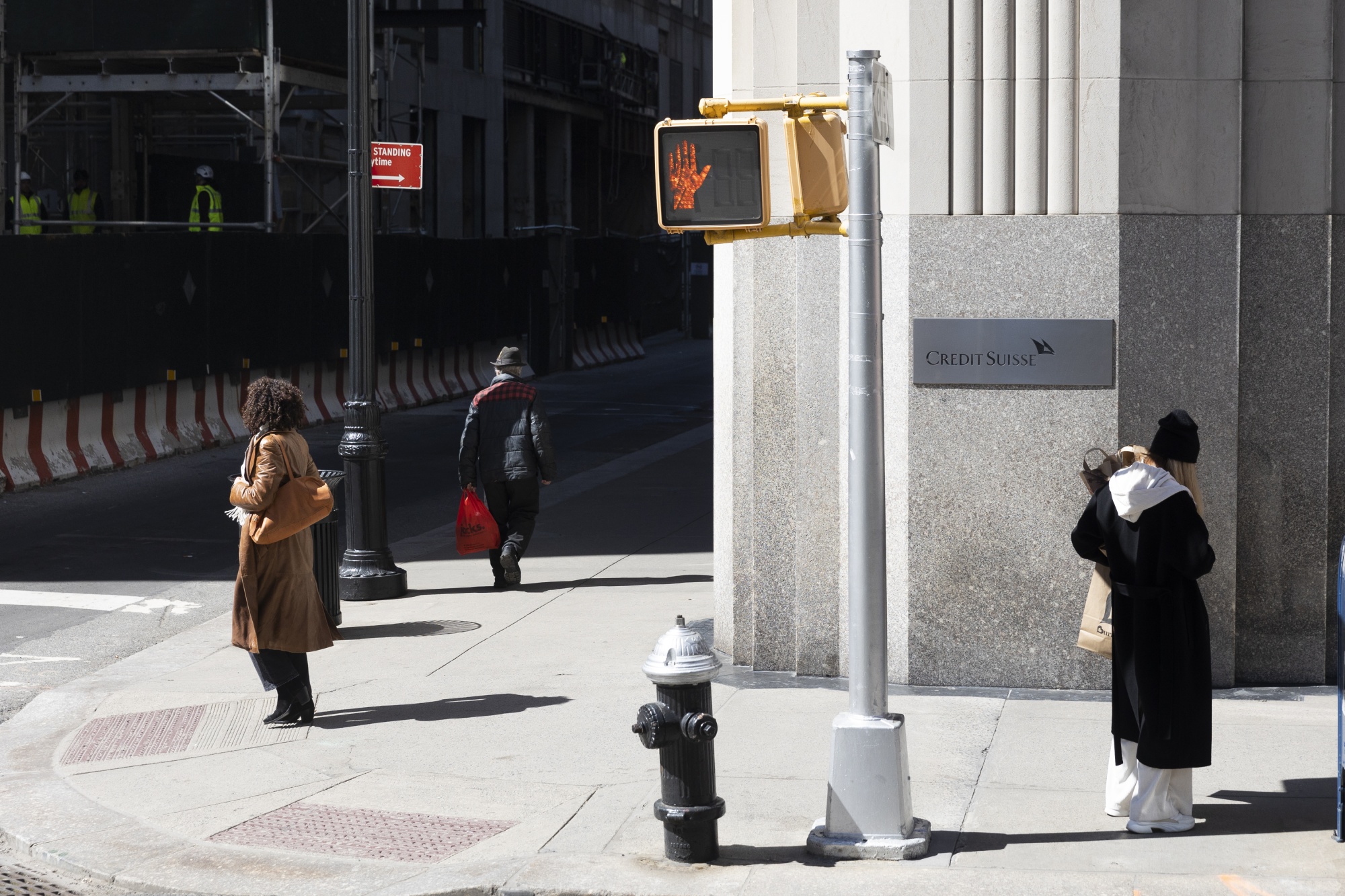 纽约弗拉特铁区Credit Suisse办公室外的标识。