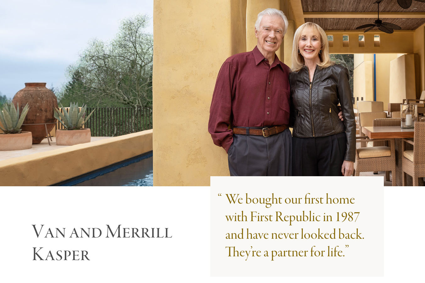 范和梅里尔·卡斯珀为第一共和银行作证这位加利福尼亚慈善家和她的华尔街丈夫称第一共和银行不仅仅是生活伴侣。一位纽约房地产亿万富翁表示,它总是在那里支持他。一位木板房间里的快餐业巨头表示,他和这家贷款人一致认为:成功来自信任。