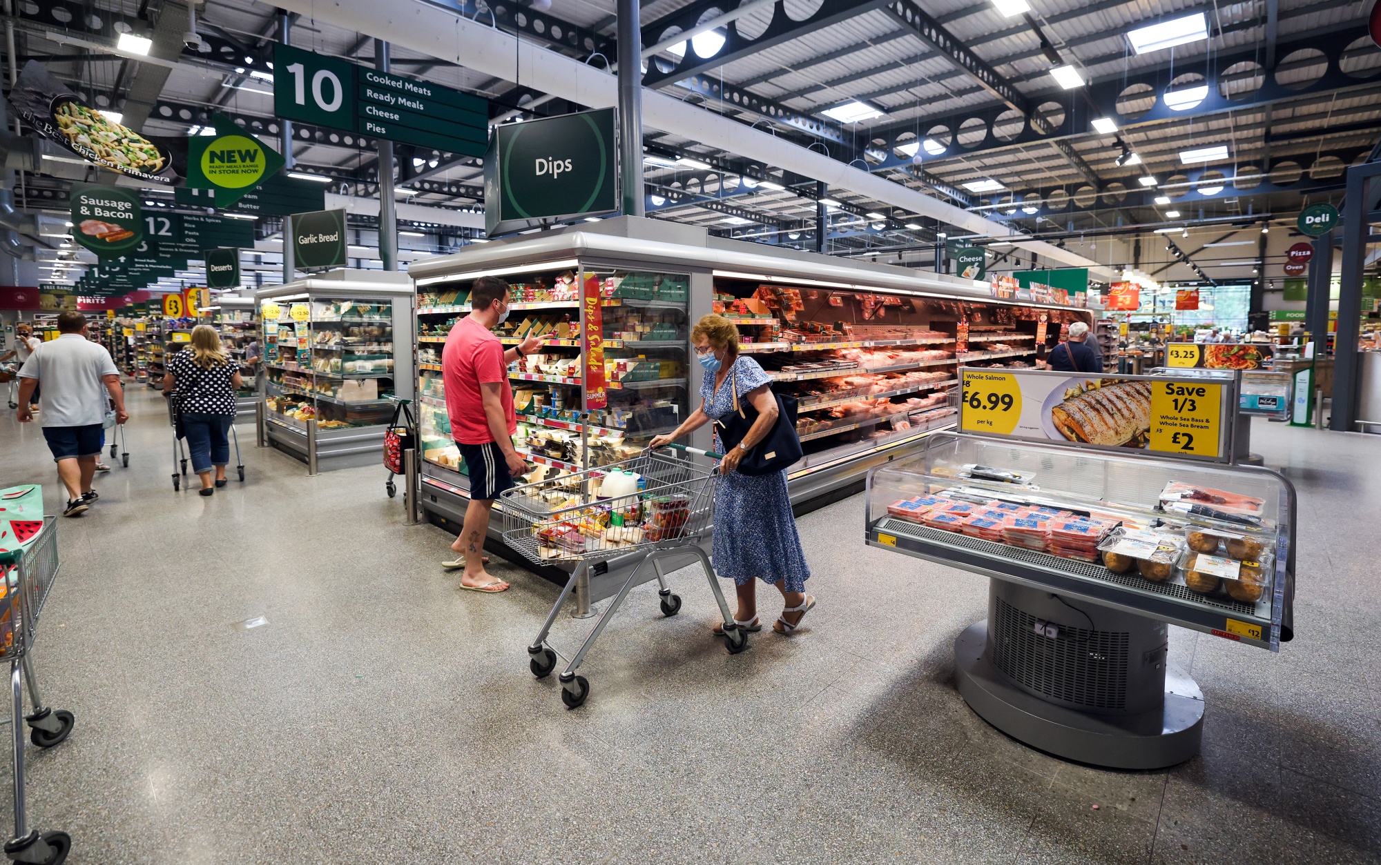 顾客在英国圣艾夫斯的一家莫里森超市内移动。