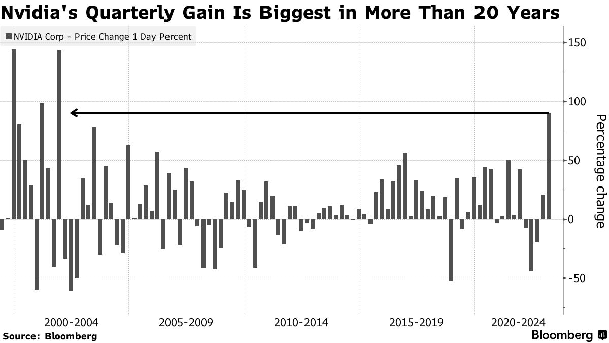 然而,纳斯达克100指数和标普500指数上涨最多的股票是英伟达公司。这家芯片制造商今年上涨了90%,是自2001年以来的最大季度涨幅。这一涨幅反映了人工智能领域的高度关注,因为英伟达的芯片被用于驱动聊天机器人和其他技术。然而,这一涨幅突显了人们对该股估值的担忧。