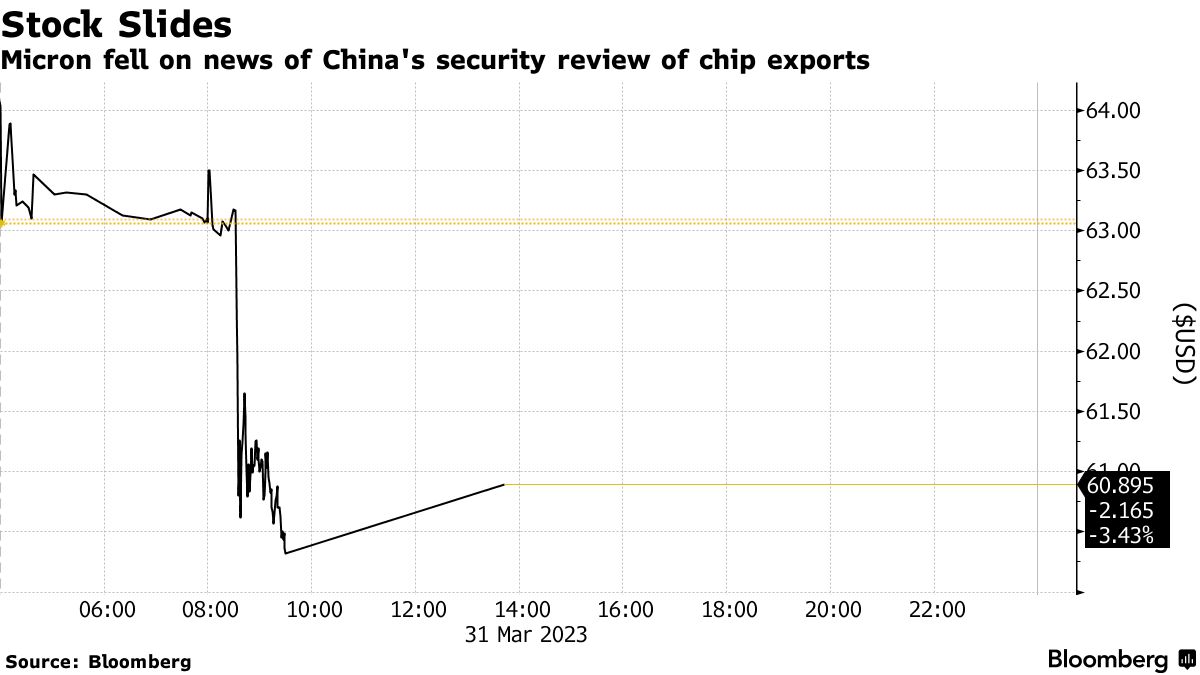中国政府在周五的一份声明中表示,正在进行审查以确保其信息基础设施供应链的完整性,防范网络安全风险并维护国家安全。美光的股价在纽约下跌了4.4%,至60.34美元。这是三个多月来最糟糕的单日跌幅。