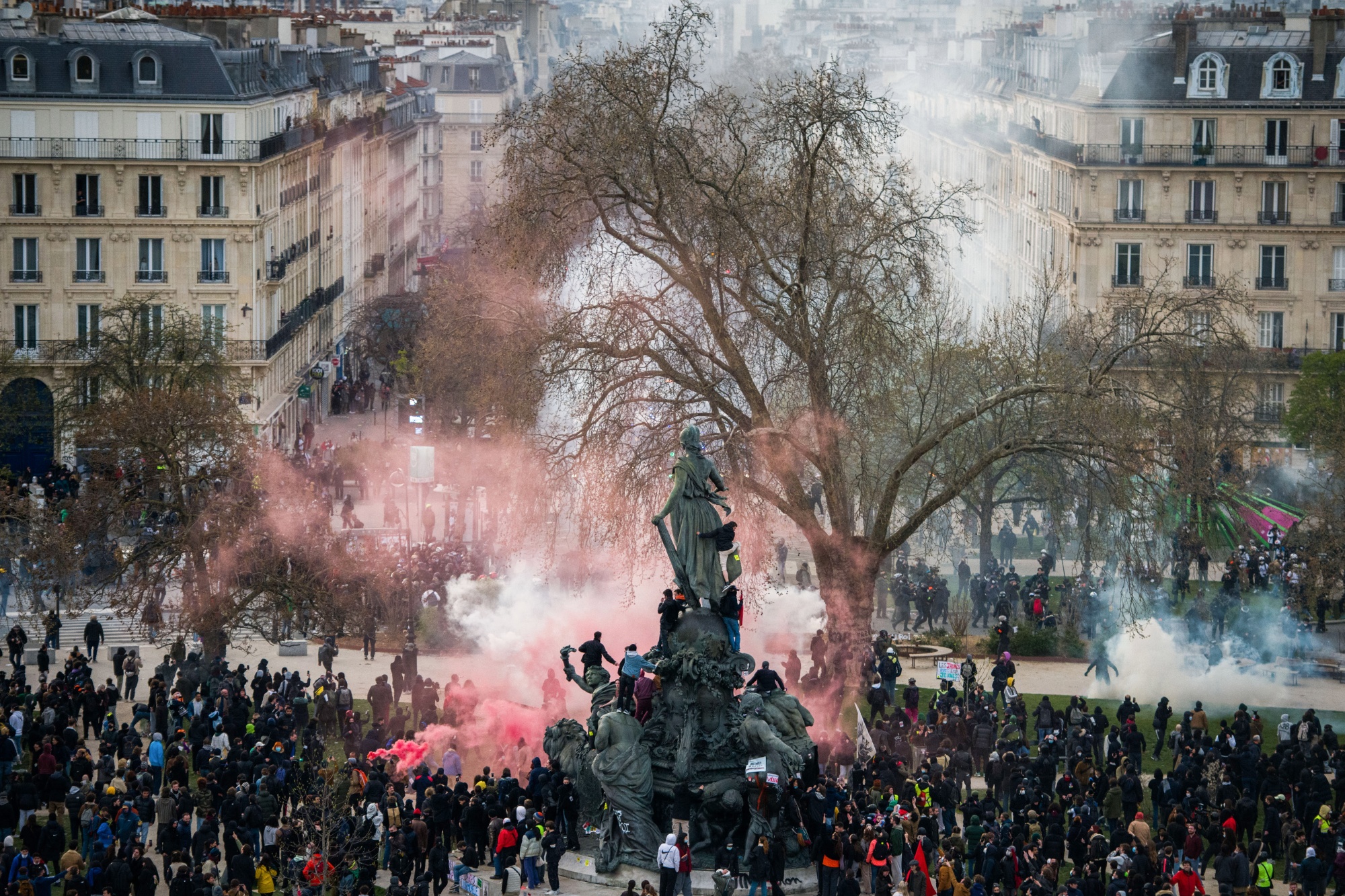 抗议者周二爬上了巴黎市中心的共和国凯旋雕塑。摄影师:Nathan Laine/Bloomberg欧洲动荡时代预示着更多有关劳动果实的冲突英国、德国和法国的公共服务罢工信号着工人们为了阻止自己在国家收入中所占份额的下降而进行的加剧斗争。William Wilkes、Tom Rees和Wilfried Eckl-Dorna写道,他们的反击是由一次半个世纪一遇的生活成本危机引发的。