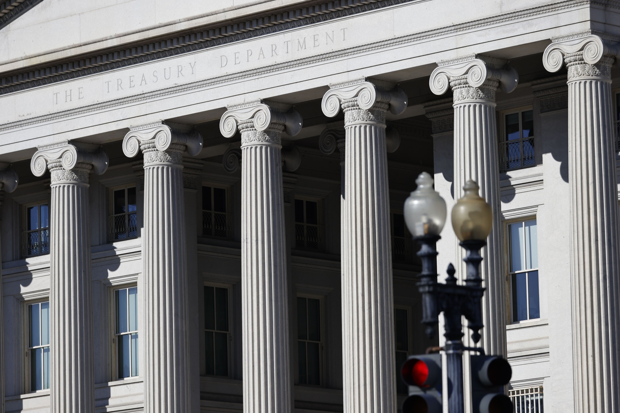 华盛顿特区的美国财政部大楼。摄影师:沈婷/Bloomberg在美国,对几家地区银行和瑞士信贷倒闭的恐慌似乎已经平息,纳斯达克重新进入牛市。