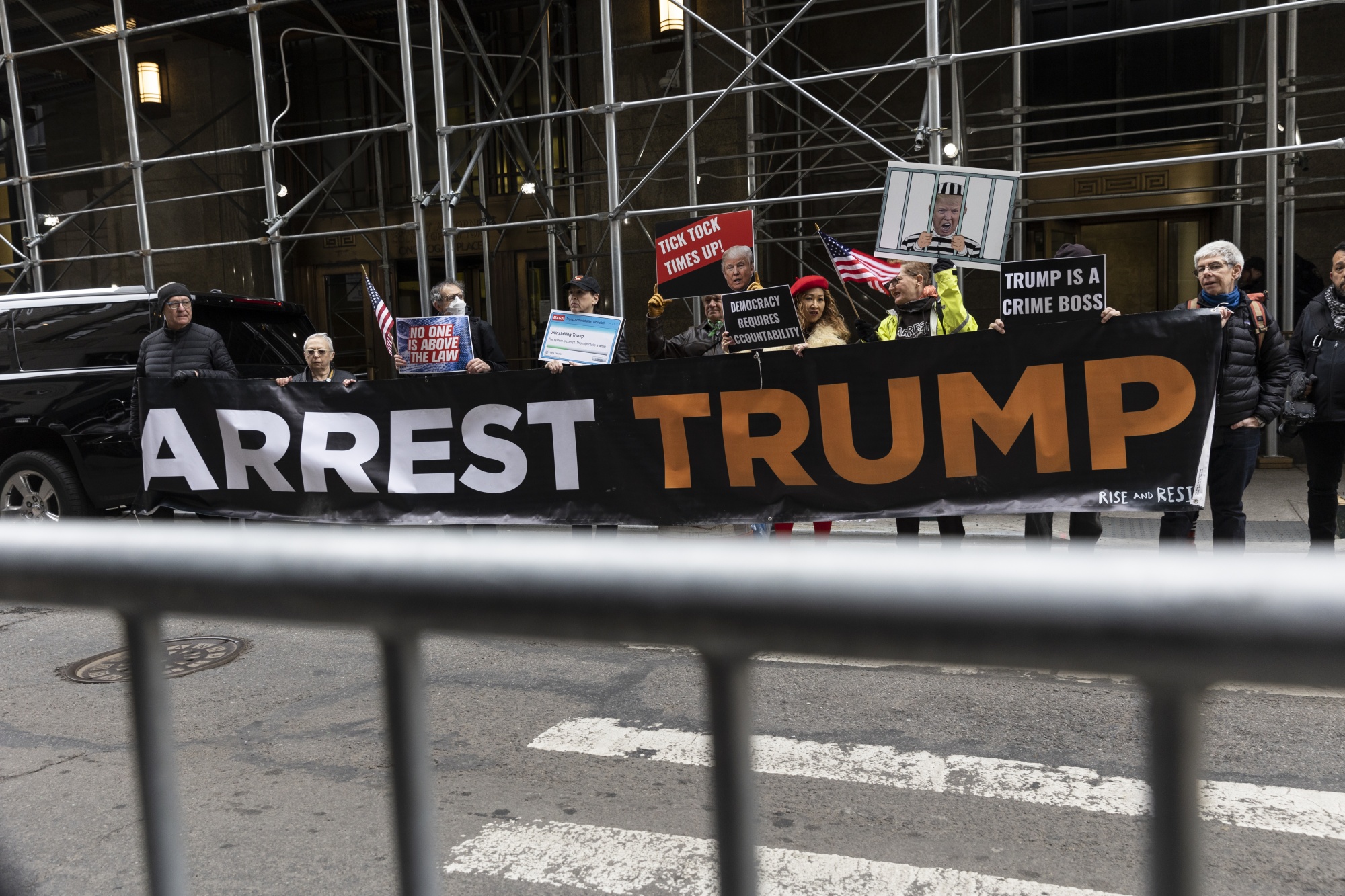 3月24日,曼哈顿下城刑事法院外的示威者。大陪审团提起了一项与成人影星斯多米·丹尼尔斯涉嫌的封口费有关的对唐纳德·特朗普的起诉。摄影师:安格斯·莫丹特/彭博社那个命运般的日子制定的暴力先例,是纽约官员派遣警察在曼哈顿的弗利广场设立营地的原因,那里大部分法院都位于此地。事实上,特朗普在纽约的起诉可能会为他2024年共和党总统提名的竞选注入新活力,并且他声称自己长期以来一直是民主党“深层国家”的受害者。其他共和党政客,包括他的主要竞争对手,纷纷声援他,并称大陪审团的起诉是出于政治动机,这一指控遭到曼哈顿地区检察官阿尔文·布拉格的否认。