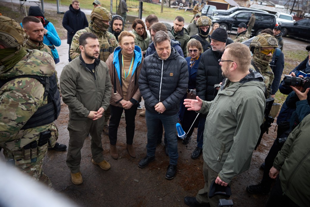 泽连斯基和德国的哈贝克访问乌克兰村庄(下午4:15)