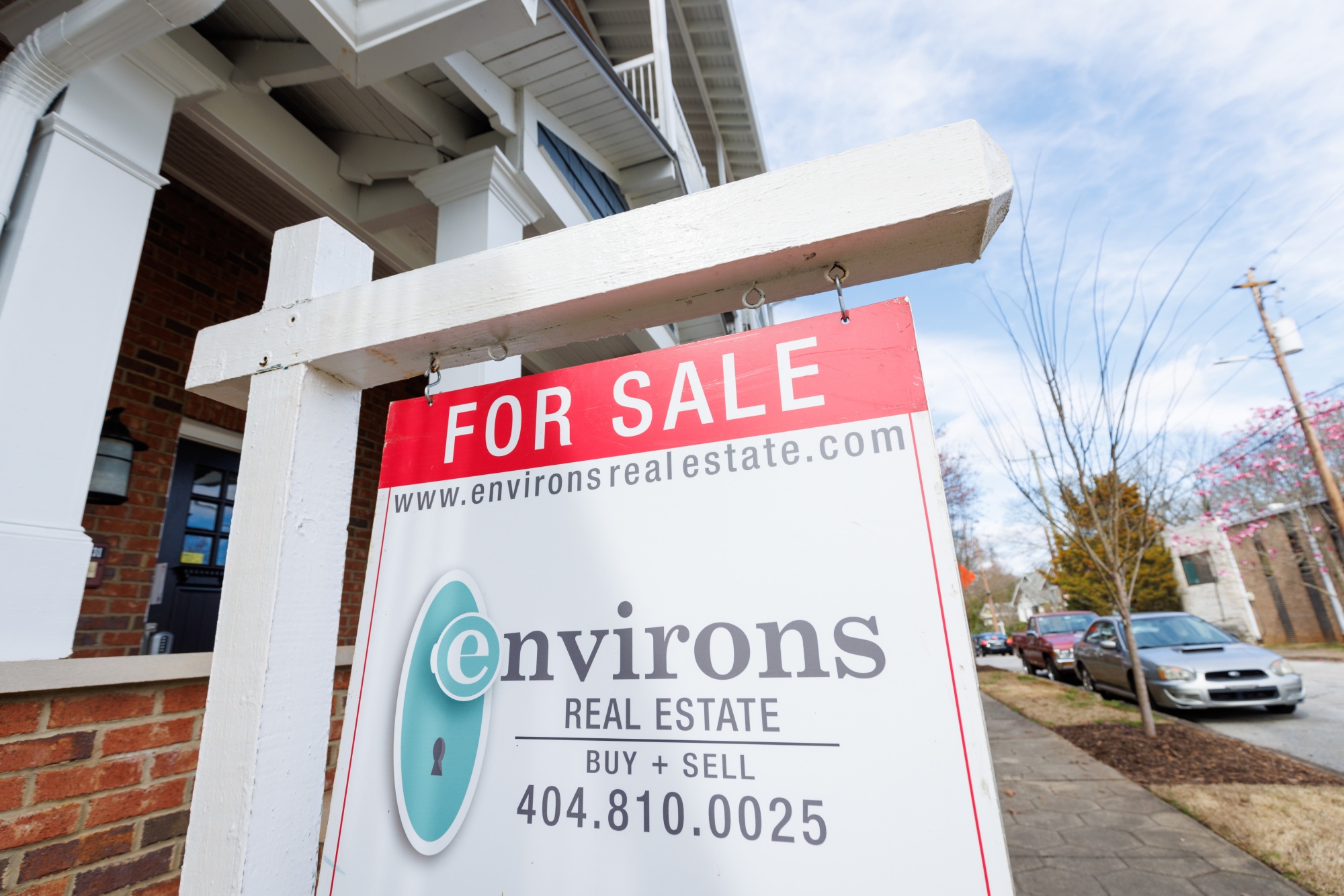亚特兰大,乔治亚州的一间公寓外面有一个“待售”标志。