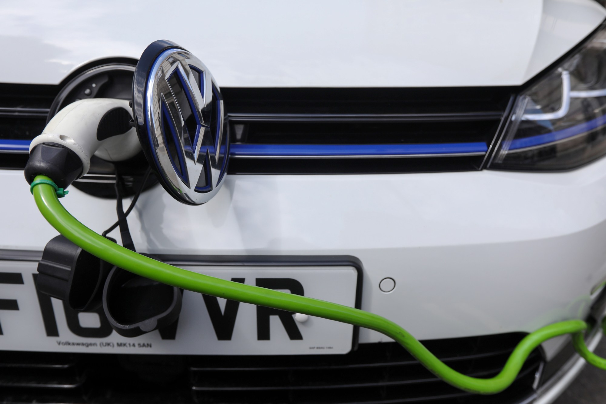 大众汽车GTE高尔夫混合动力汽车上的充电插头。