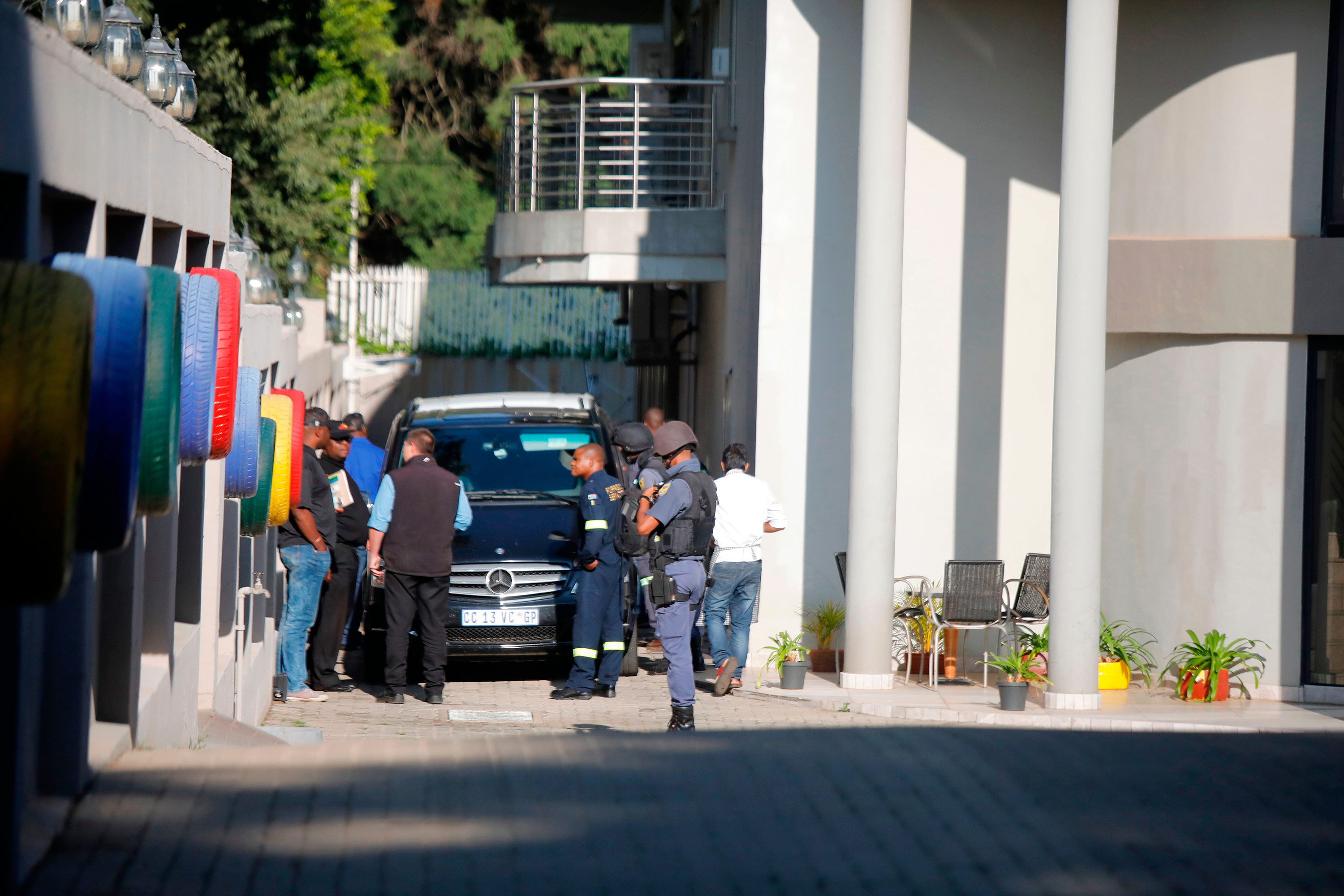 2018年约翰内斯堡古普塔兄弟住所内的警察。摄影师:Wikus De Wet/AFP/ Getty Images这两兄弟在6月份被阿联酋拘留,此前南非的一项调查详细列出了古普塔兄弟与前总统雅各布·祖马之间的联系。证人声称他们从国有公司中挪用资金,并共同决定内阁任命。古普塔兄弟和祖马否认这些指控。