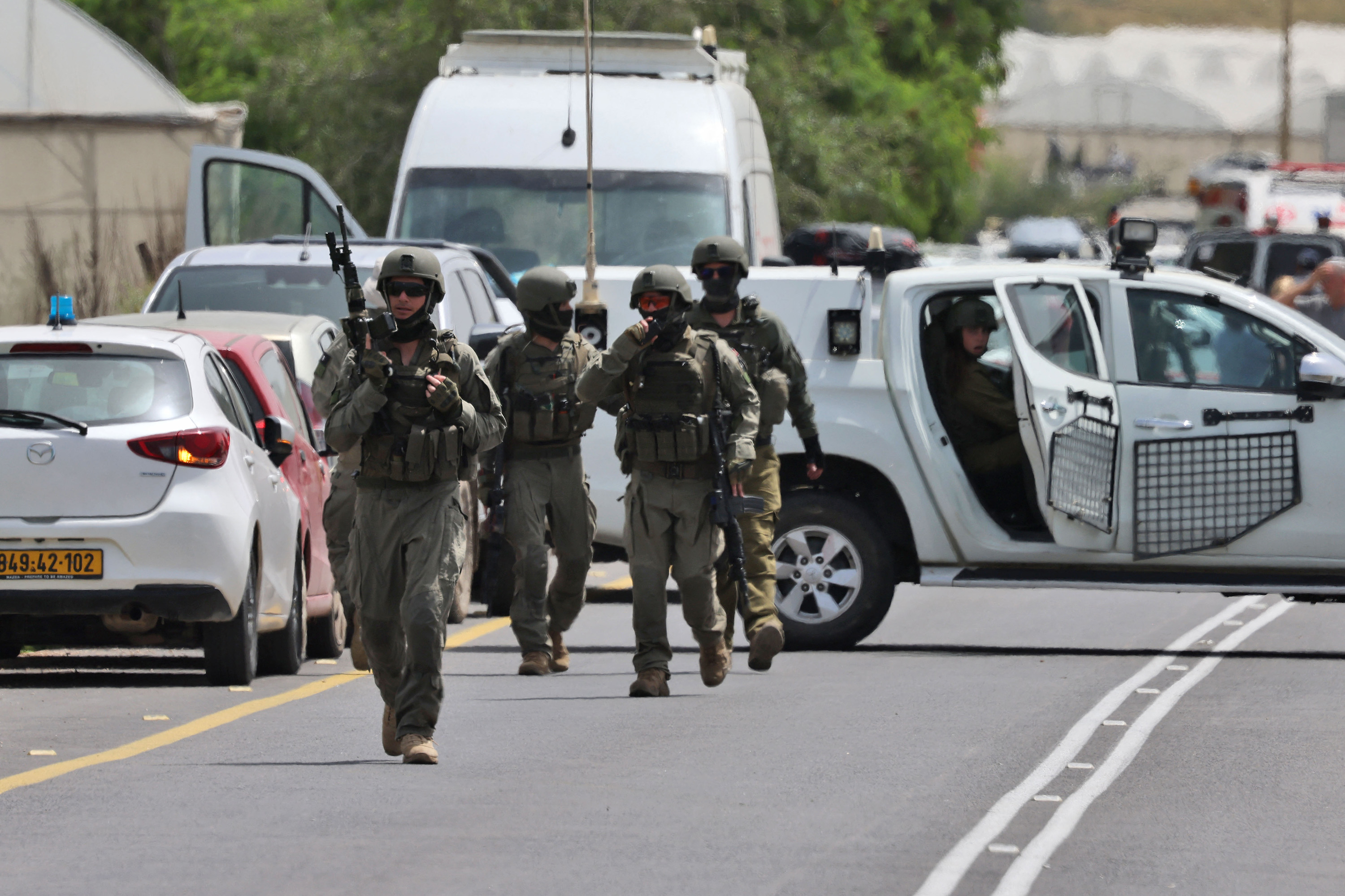 以色列军队在占领的西岸发生枪击事件后,4月7日。摄影师:贾法尔·阿什蒂耶/法新社/盖蒂图片社此外,在占领的西岸发生了一起针对三名以色列妇女的枪击事件,造成两名年轻成年姐妹死亡,母亲重伤。哈马斯在加沙发表声明,赞扬该袭击为“英勇行动”。