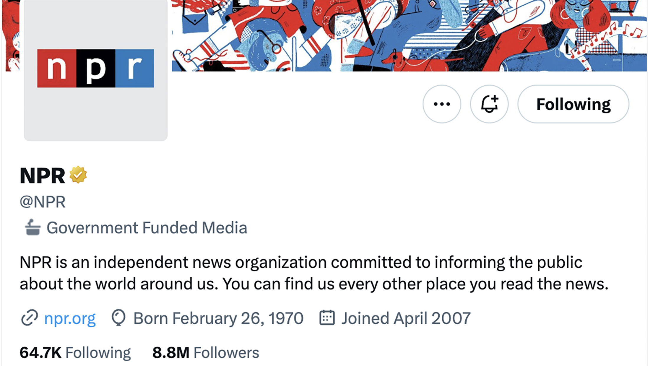 Twitter撤销NPR标签,调整为“政府资助媒体”-彭博社