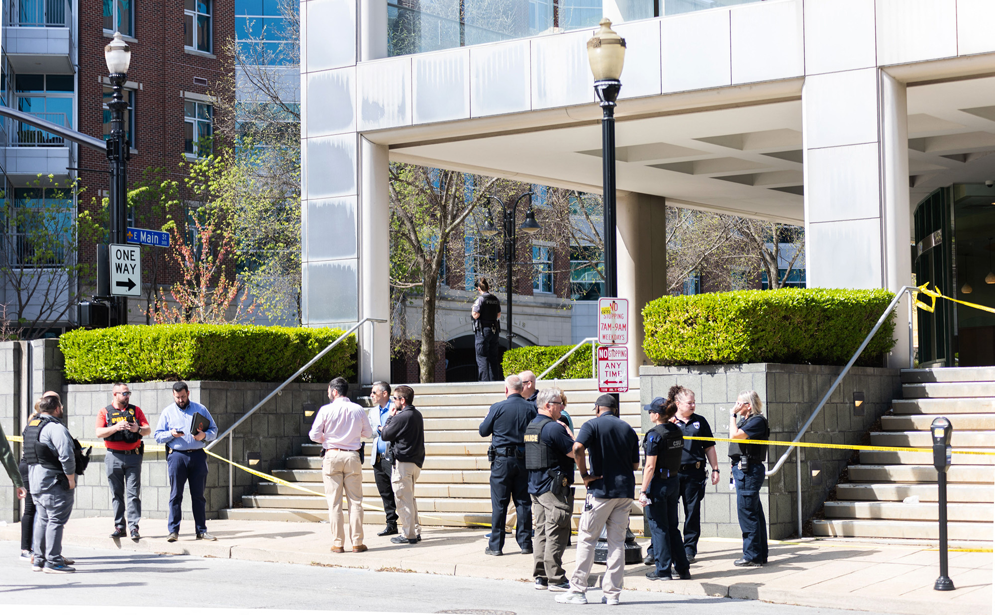 路易斯维尔市中心一起枪击案的现场警察,发生在4月10日。