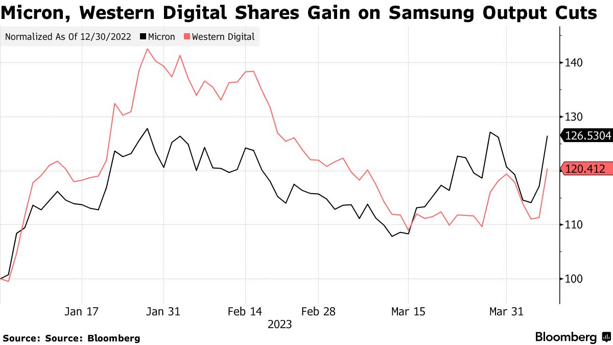 三星削减芯片生产,提振美光(MU)、西部数据(WDC)股价 - 彭博社
