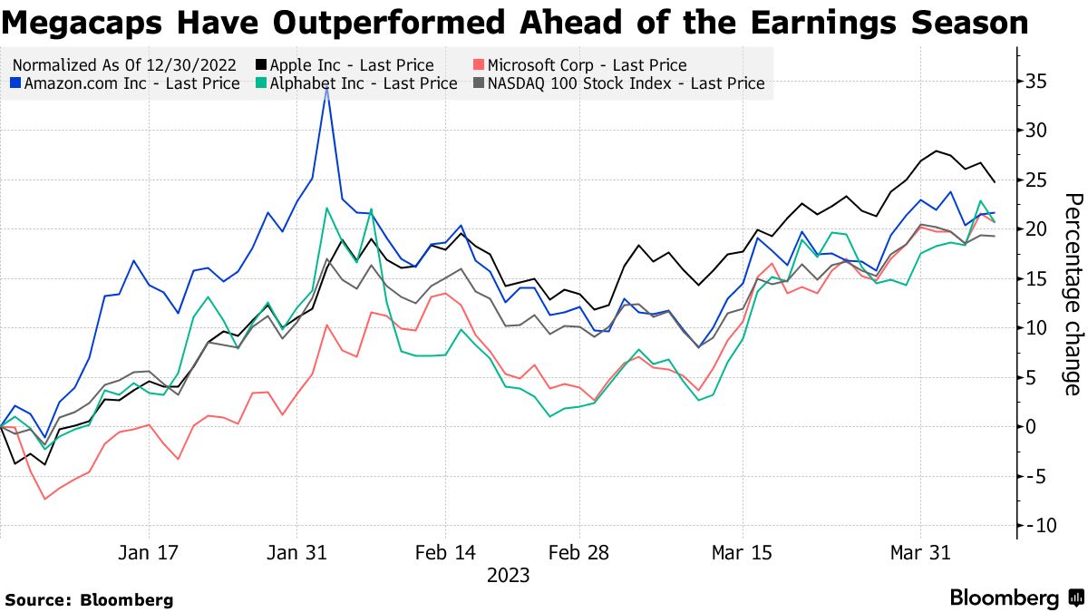 苹果公司、微软公司等巨头几乎是标普500指数今年上涨7%的唯一推手,而银行业动荡导致投资者涌向被视为避风港的情况下。随着预计第一季度利润将下降15%,投资专业人士正为一场重大回调做准备,如果这些巨头未能超越预期。