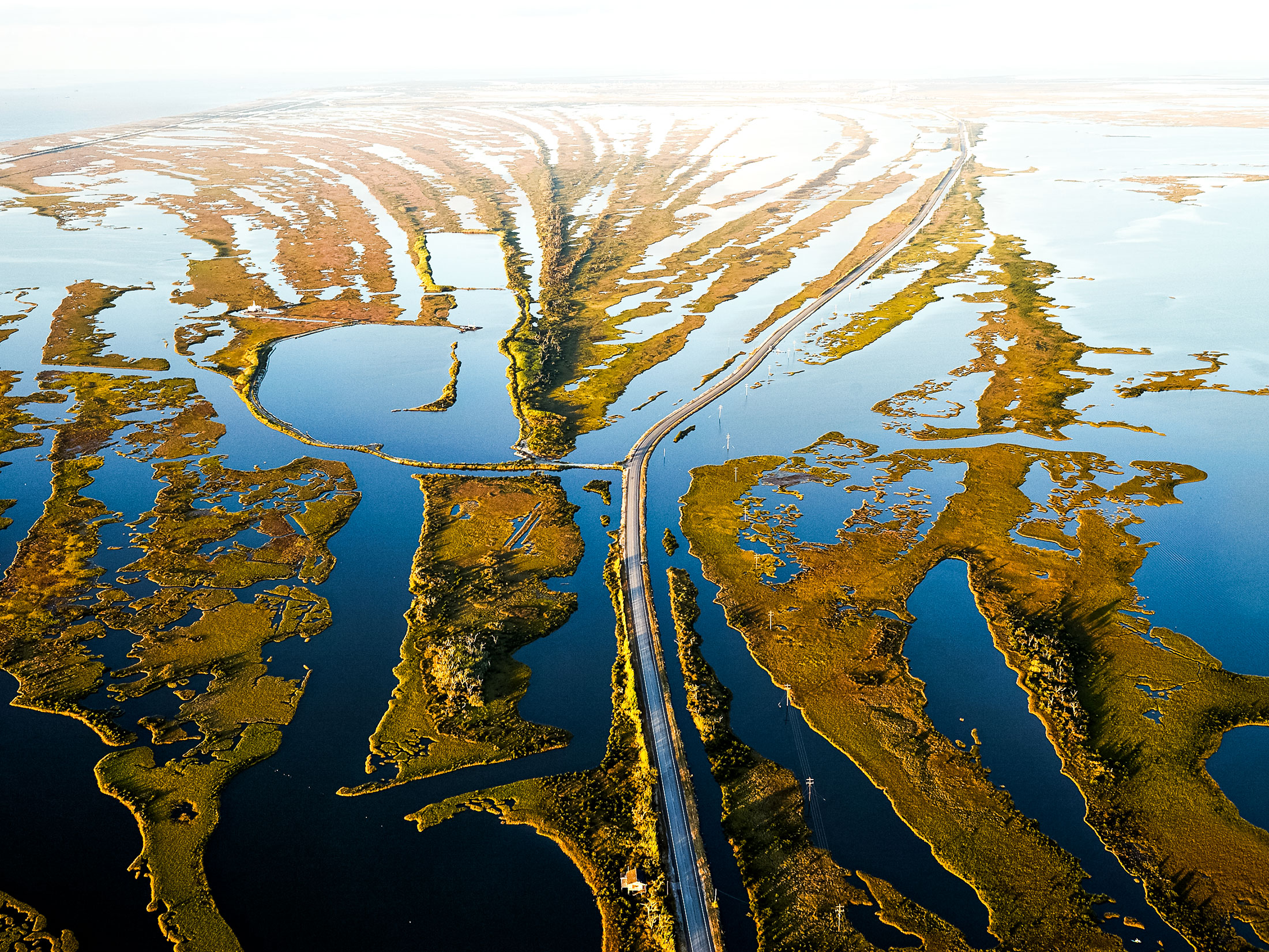 路易斯安那1号公路穿过数英里的侵蚀湿地,正如本·德普在2014年拍摄的这张照片所示。摄影师:本·德普如今对海岸线最大的威胁是气候变化,随着海平面上升和墨西哥湾风暴变得越来越频繁和强大。过去两年,飓风劳拉、德尔塔、莎莉和艾达袭击了当地的教区,迫使人们多次疏散并摧毁了财产。曾经作为自然屏障的岛屿和湿地正变得薄弱。