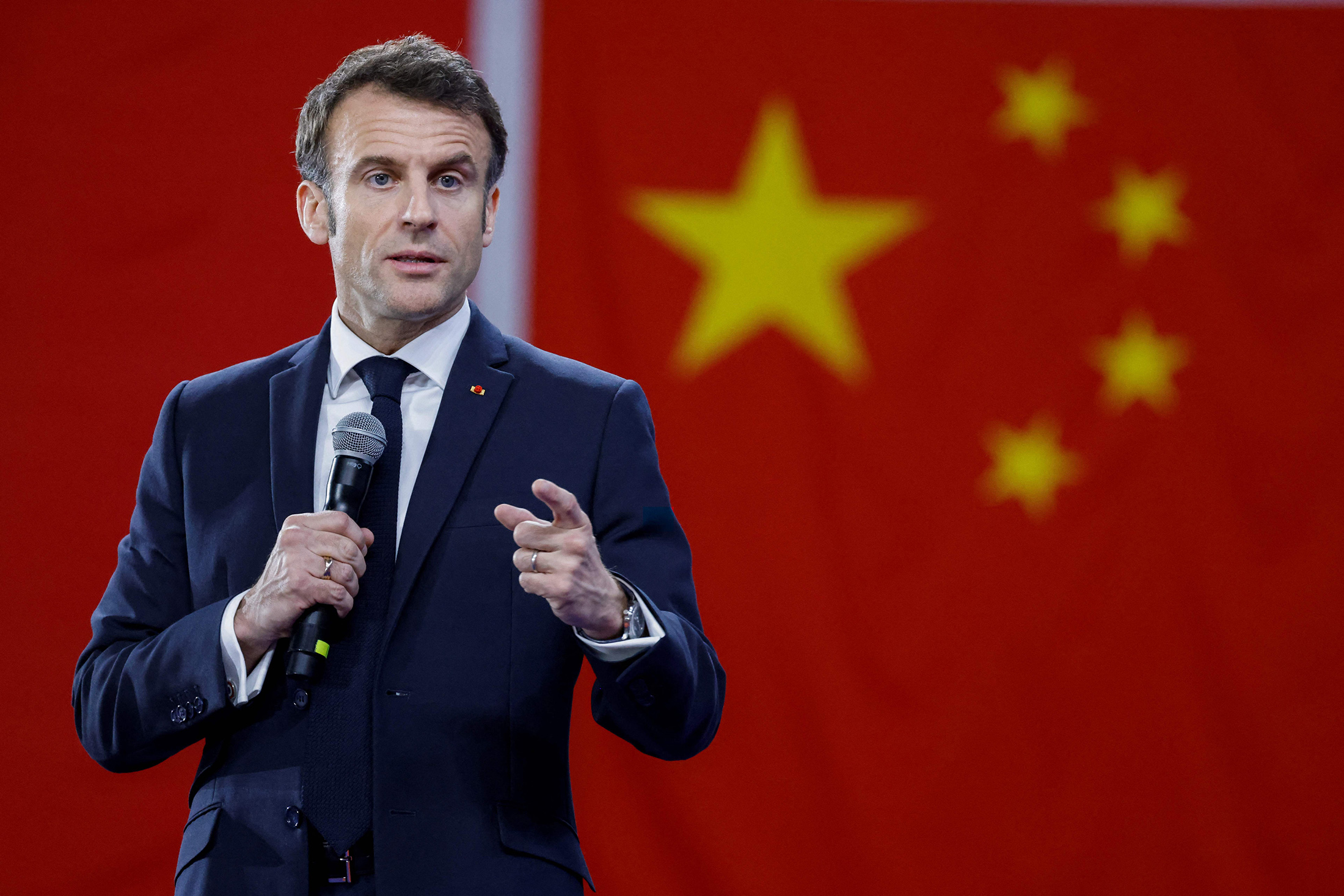 埃马纽埃尔·马克龙4月7日在中国广州中山大学发表讲话。摄影师:Ludovic Marin/AFP/Getty Images在周三,埃马纽埃尔·马克龙为了呼吁欧洲避免被卷入北京和华盛顿之间的冲突而辩护。