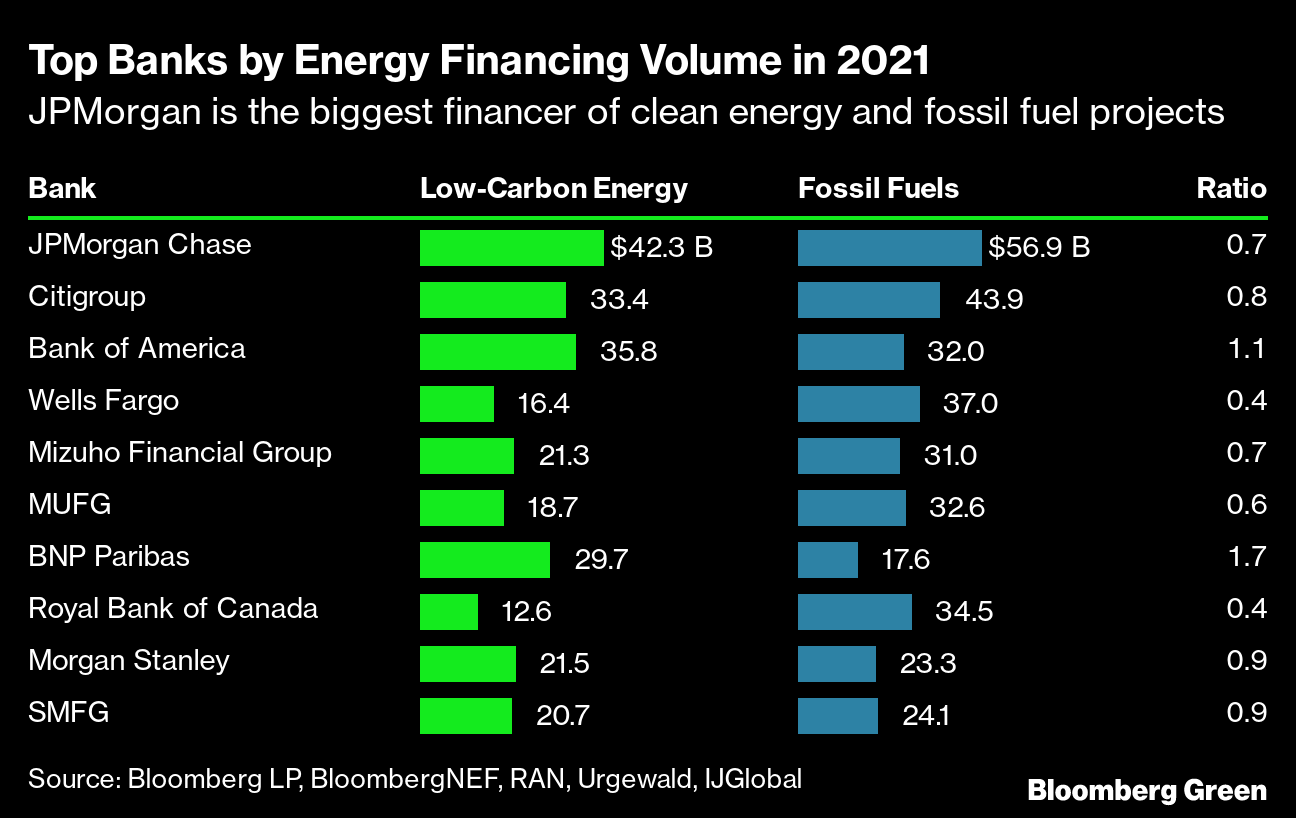 银行继续支持化石燃料,这是地球变暖污染的主要来源,导致该行业及其主导者面临来自股东和活动团体的批评。与此同时,金融部门受到美国右翼的巨大压力,因为共和党惩罚放贷人似乎拥抱环境、社会和良好治理目标,如减少融资排放。