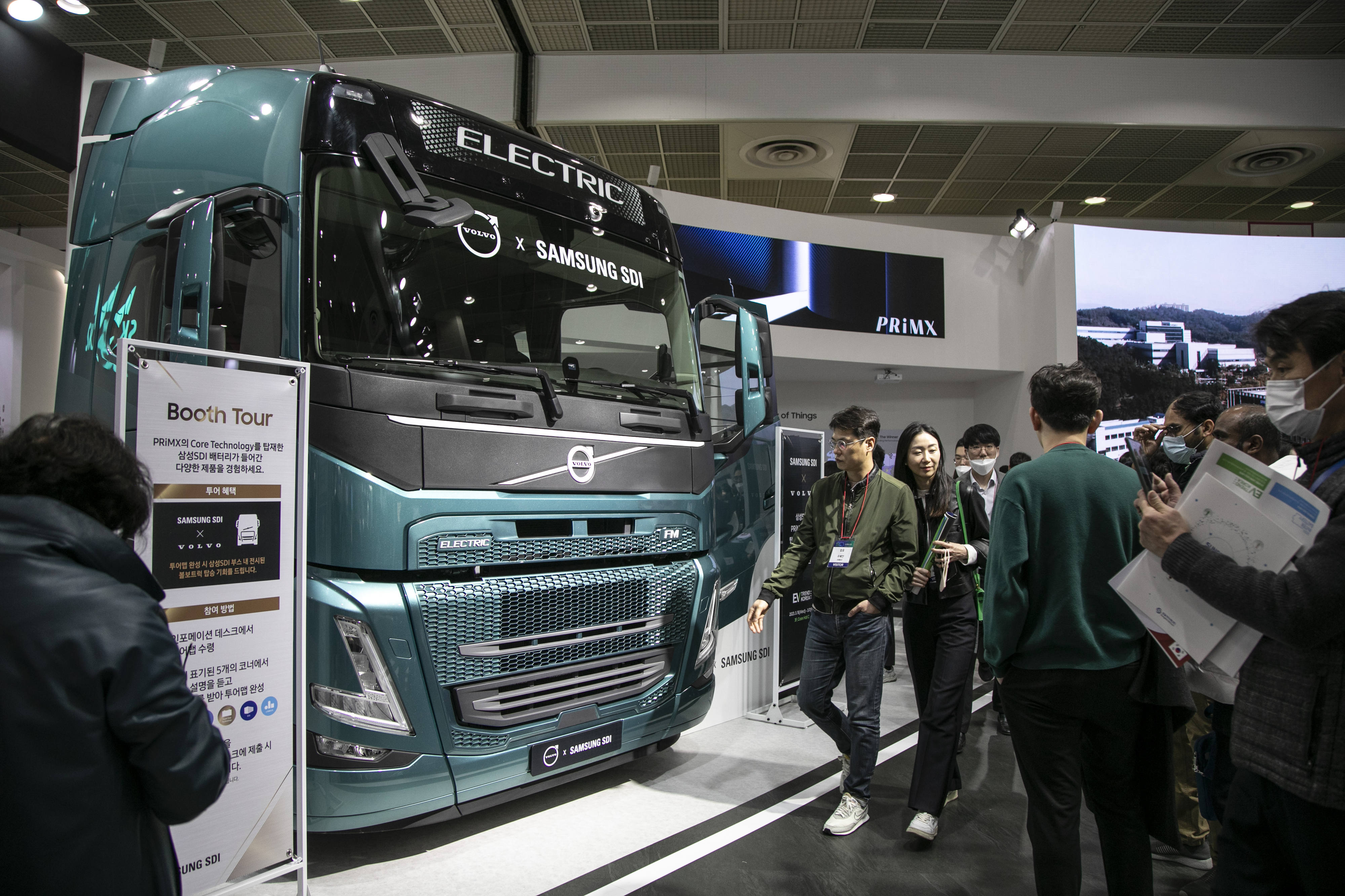 三月十六日,在首尔举行的InterBattery展览上展出的一辆沃尔沃电动卡车。