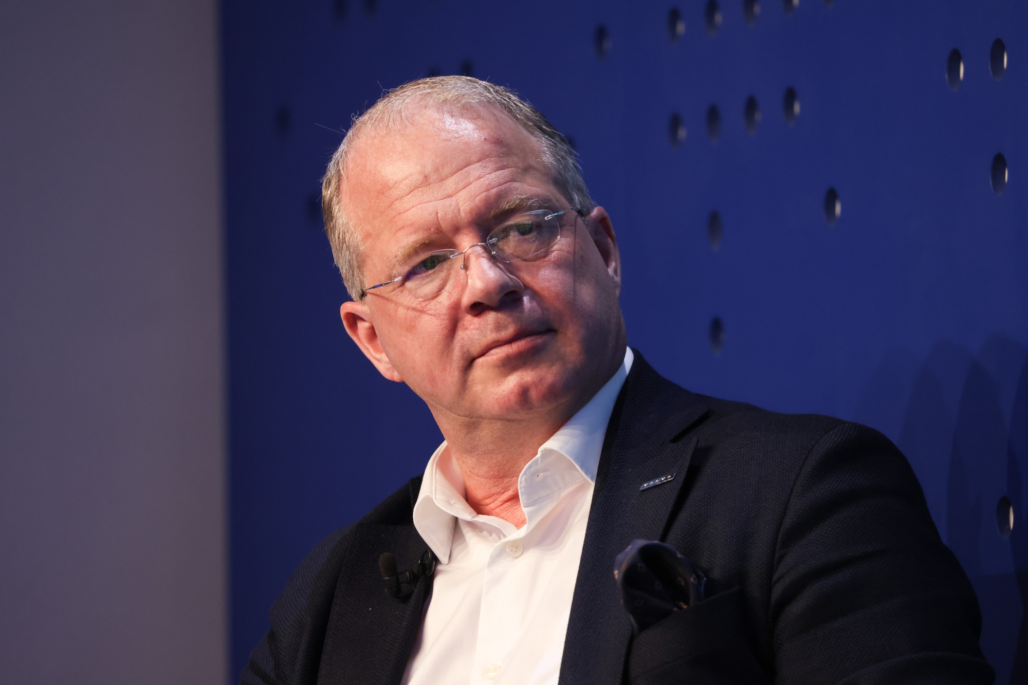 沃尔沃首席执行官Martin Lundstedt在2022年世界经济论坛上。摄影师:Hollie Adams/Bloomberg减少道路物流的碳排放是政府和企业面临的 最大挑战之一,这有助于遏制全球变暖。卡车和公共汽车的二氧化碳排放在过去二十年里 激增了80%,这些车辆严重导致城市地区有毒颗粒物的污染。根据世界经济论坛的一份 报告,为了将温度上升限制在不超过1.5°C,本十年销售的卡车必须有三分之二是零排放的。