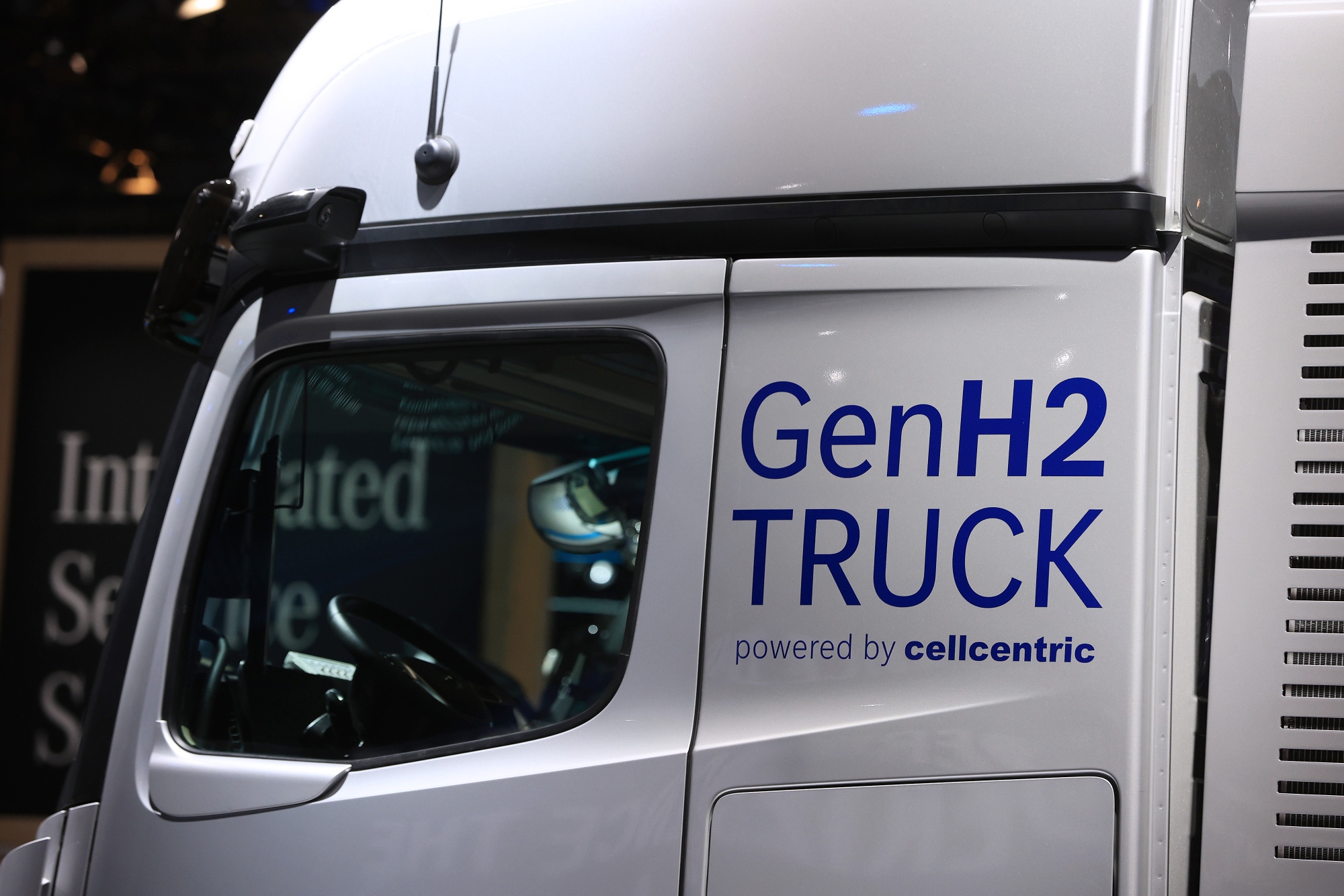 去年在德国汉诺威举办的IAA交通展上展出的梅赛德斯-奔驰GenH2氢动力卡车。摄影师:Krisztian Bocsi/Bloomberg但是不要轻视燃料电池卡车。它们的动力传动系统将氢气转化为电力,然后驱动电动机,只排放水蒸气。燃料电池动力系统重量较轻,使车辆能够以更大负荷行驶更长距离,并减少加油时间。