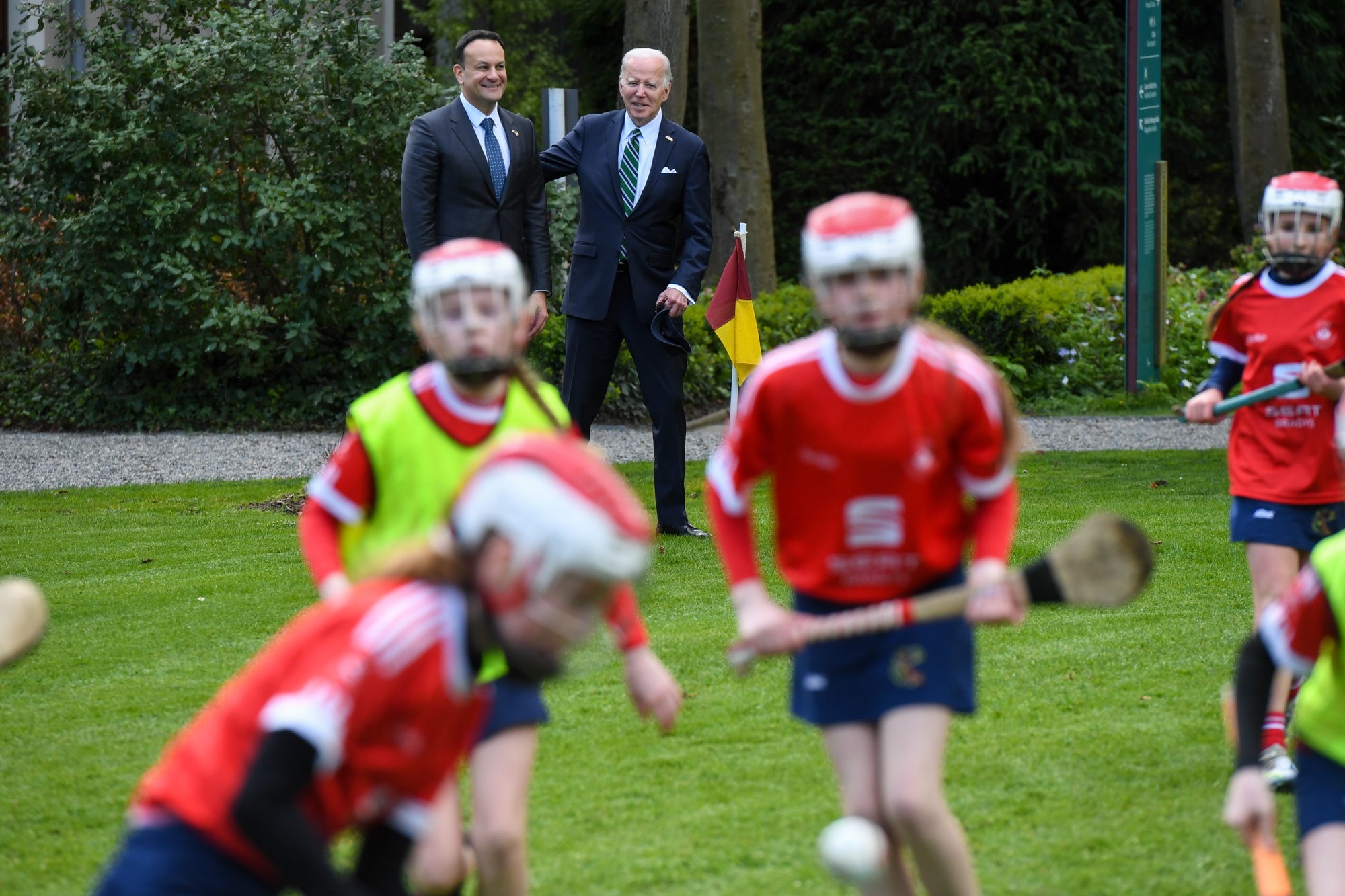 爱尔兰总理利奥·瓦拉德卡(左)和乔·拜登总统观看了4月13日在都柏林举行的传统盖尔运动曲棍球的演示。摄影师:克里斯·J·拉特克利夫/彭博社拜登以这些教训为基础——一个自豪、偶尔固执的爱尔兰天主教徒,来自宾夕法尼亚州斯克兰顿——权衡是否要尝试延长他的任期。他基本上已经清除了民主党的竞争对手,并看着前总统唐纳德·特朗普——拜登的盟友私下表示他最容易击败的人——正在一路风头无两地走向共和党提名。
