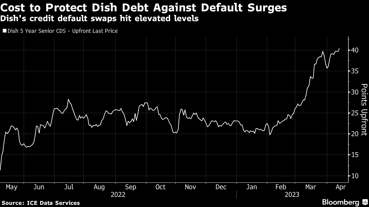 信用违约掉期市场的交易员越来越担心Dish Network,迈克尔·托宾报道。今年,保护Dish债务免受违约风险的成本激增至41个点,这意味着保险1000万美元债务约需花费410万美元。该公司的股权状况也不容乐观,在巴克莱削减其股票价格目标后,本周达到24年来的最低点,人们对公司的订户基数表示担忧。