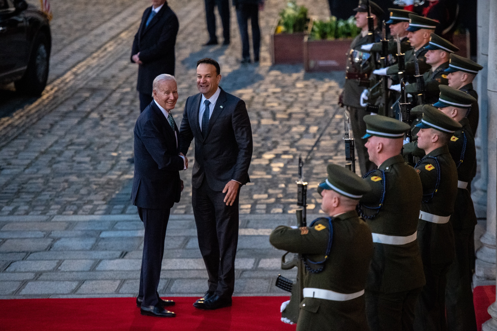 乔·拜登受到爱尔兰总理Leo Varadkar的欢迎摄影师:克里斯·J·拉特克利夫/彭博社### 明天你需要知道什么