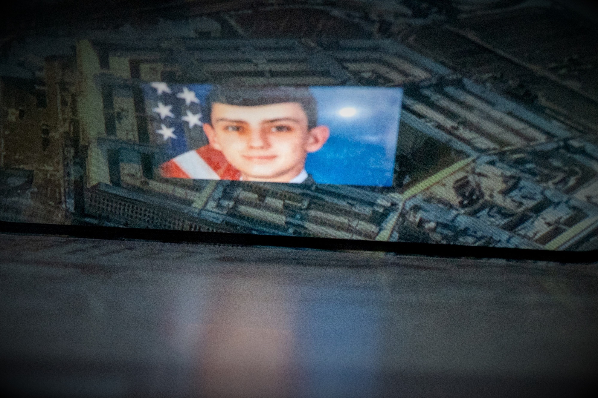 一张照片显示了嫌疑人杰克·特谢拉在华盛顿五角大楼的倒影。